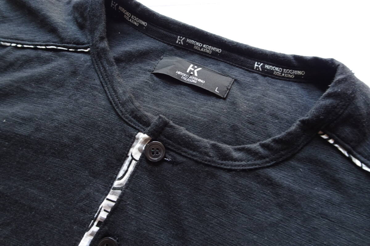 HIROKO KOSHINO RELAXING/半袖Tシャツ/ヘンリーネック/ナイトウェア/パジャマトップス/黒/ブラック/Lサイズ(5/14R7)