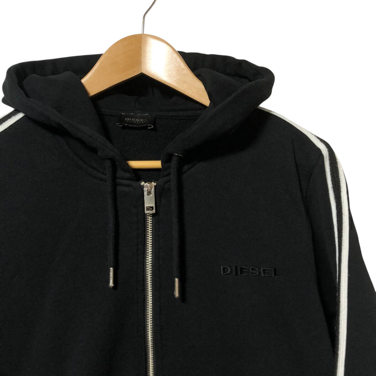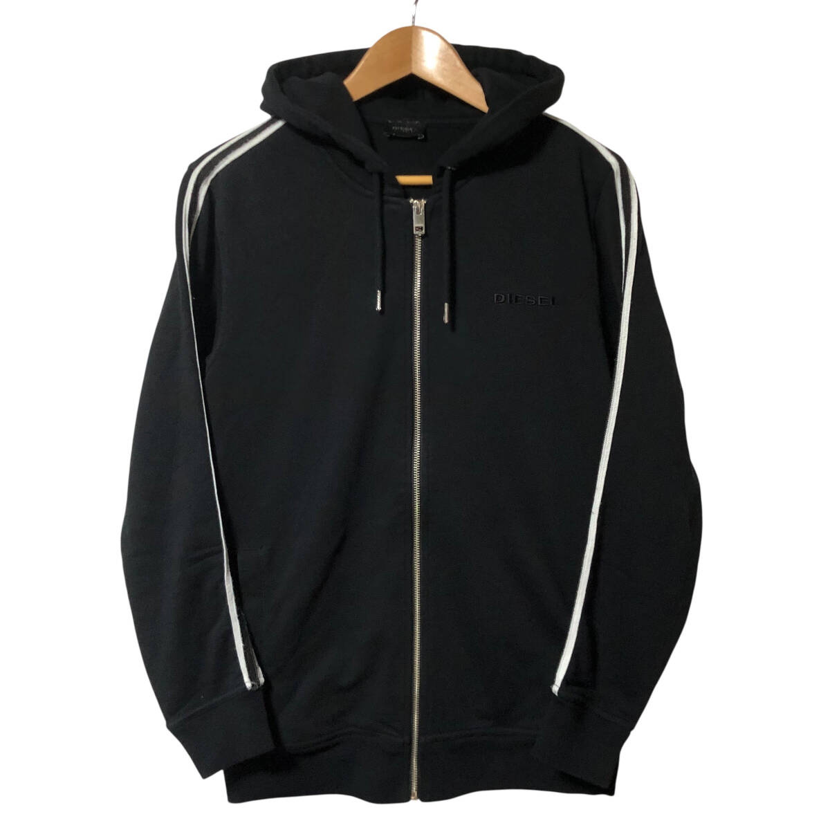 DIESEL LOUNGEWEAR ディーゼル スウェット パーカー ジップアップ ロゴ 刺繍 袖ライン S 黒 メンズ A9