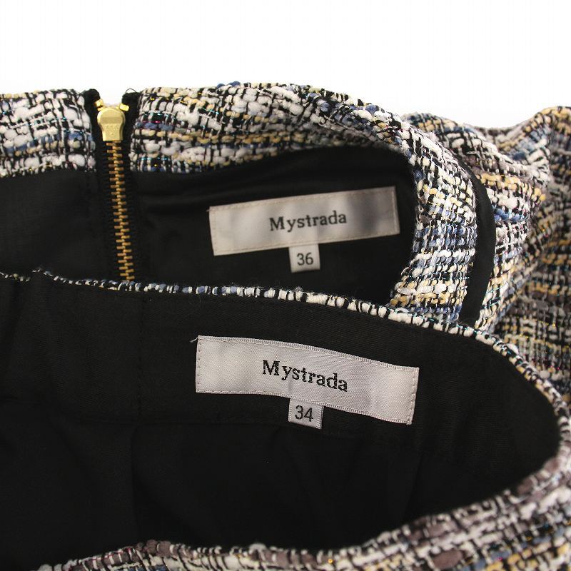 マイストラーダ Mystrada セットアップ 上下 ツイード プルオーバー 七分袖 キュロットスカート 36 34 マルチカラー /YM レディース