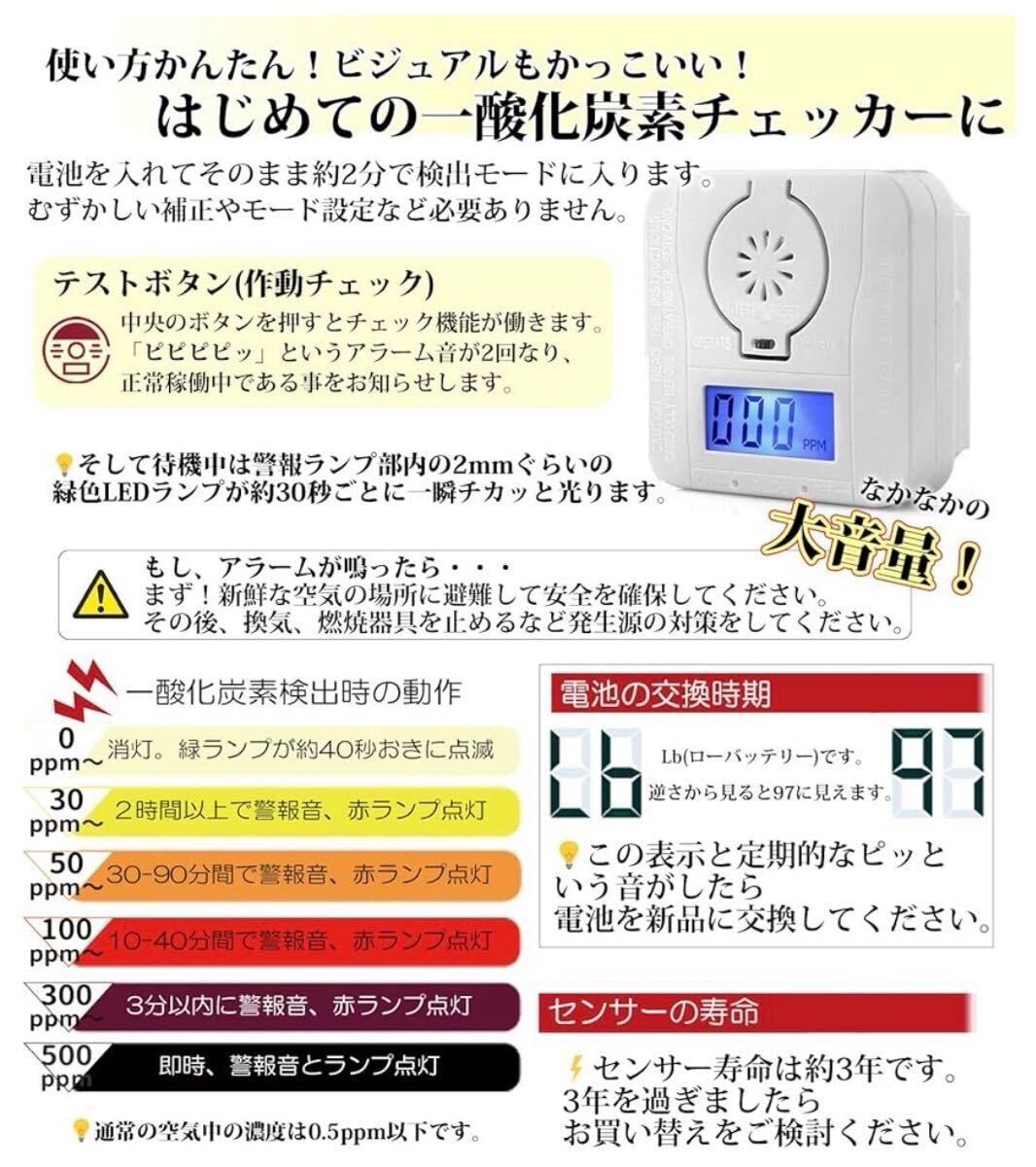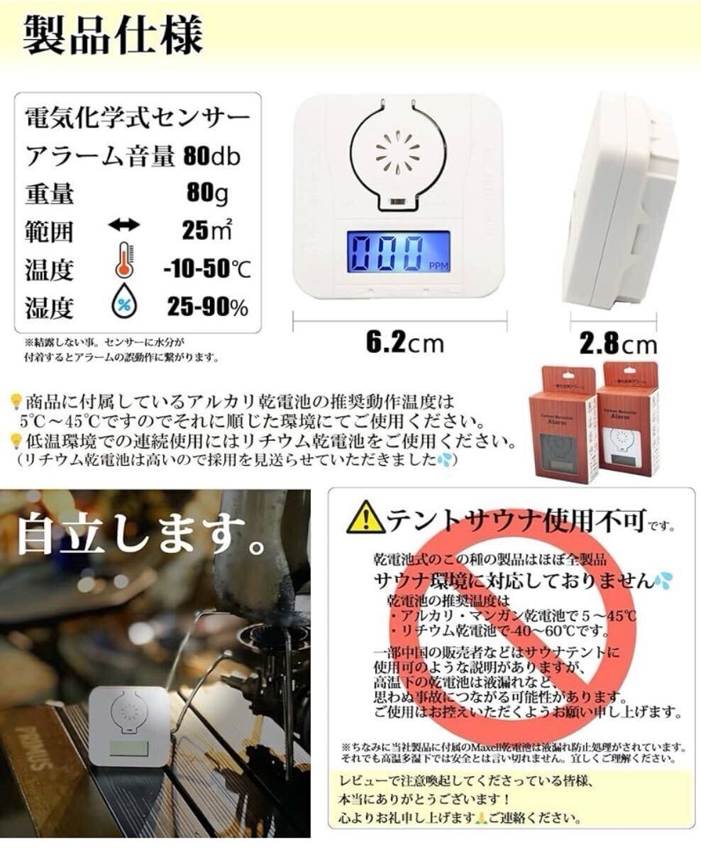 豊富な実績と信頼性、そしてコストパフォーマンスの良い電気化学式センサーを採用。中国をはじめ、ヨーロッパや北米、中東や東南アジアなど全世界に向けて年間数百万台も売れている確かな品質で世界標準の製品です。さらに製品に不備がないように日本でも検品をおこなっています。動作温度:-10-40℃、動作湿度:20-90%。センサー寿命は約5年です。