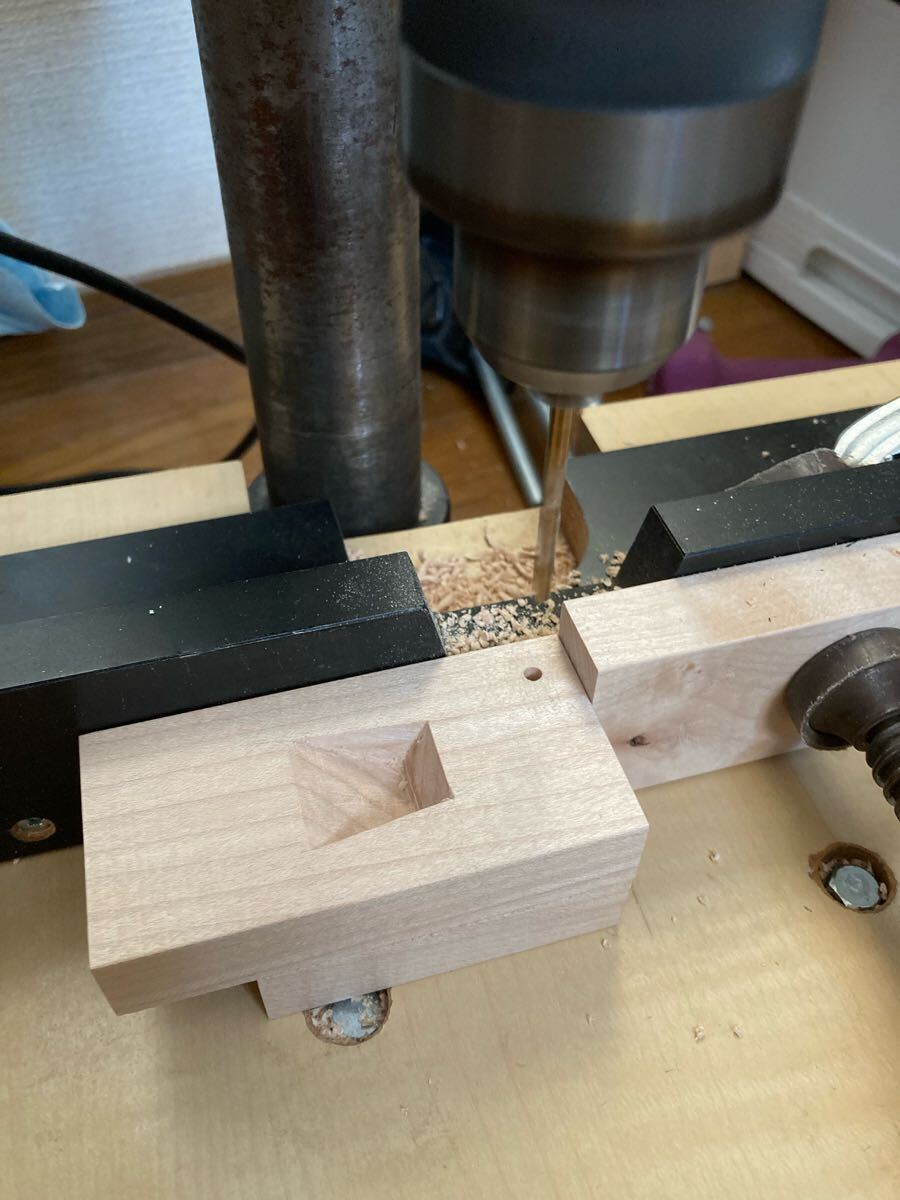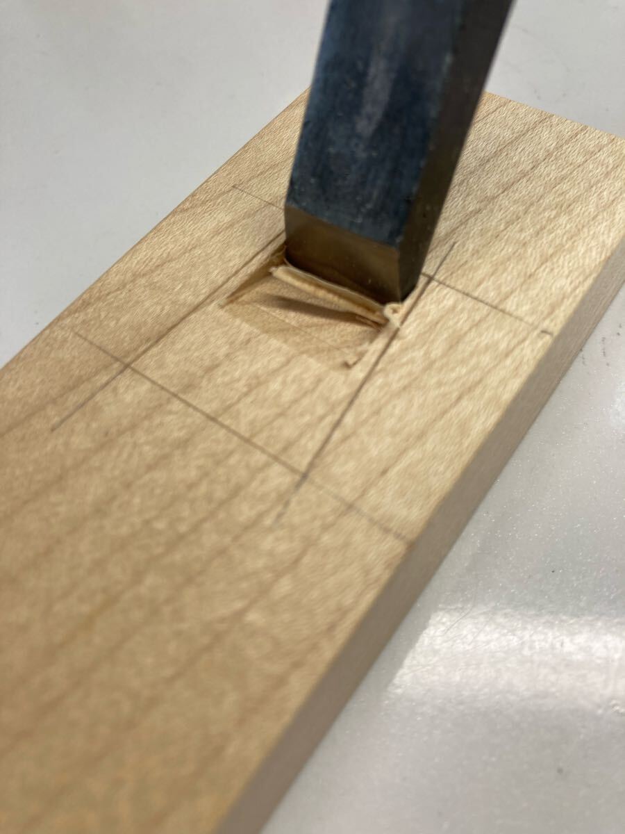 台形の溝はノミ(鑿) による手仕上げです。機械では彫れない形状です。