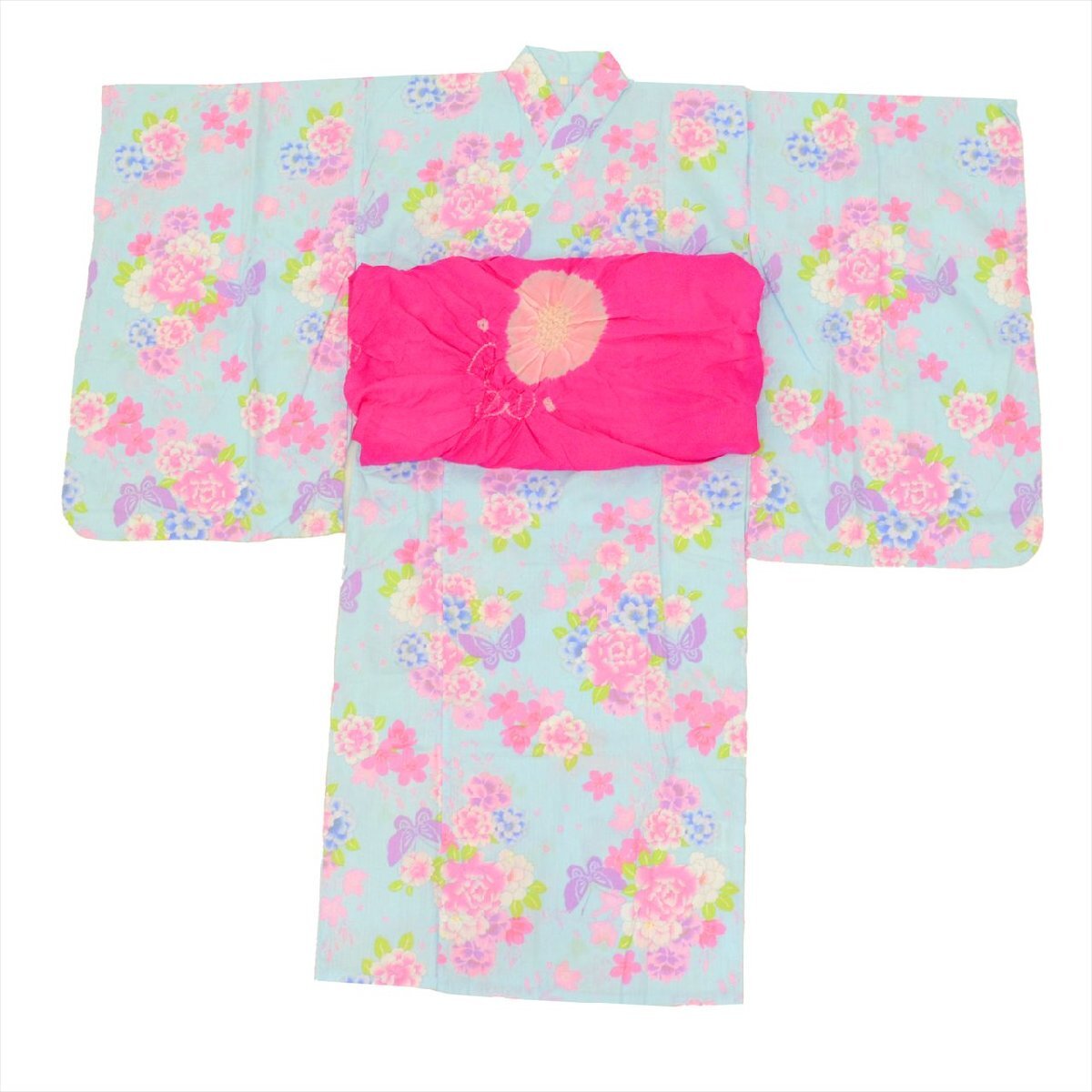 水色に花文様が施された可愛らしい女の子用のリサイクル浴衣です。
