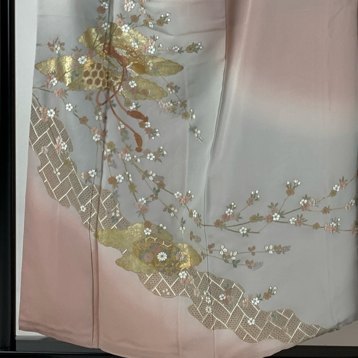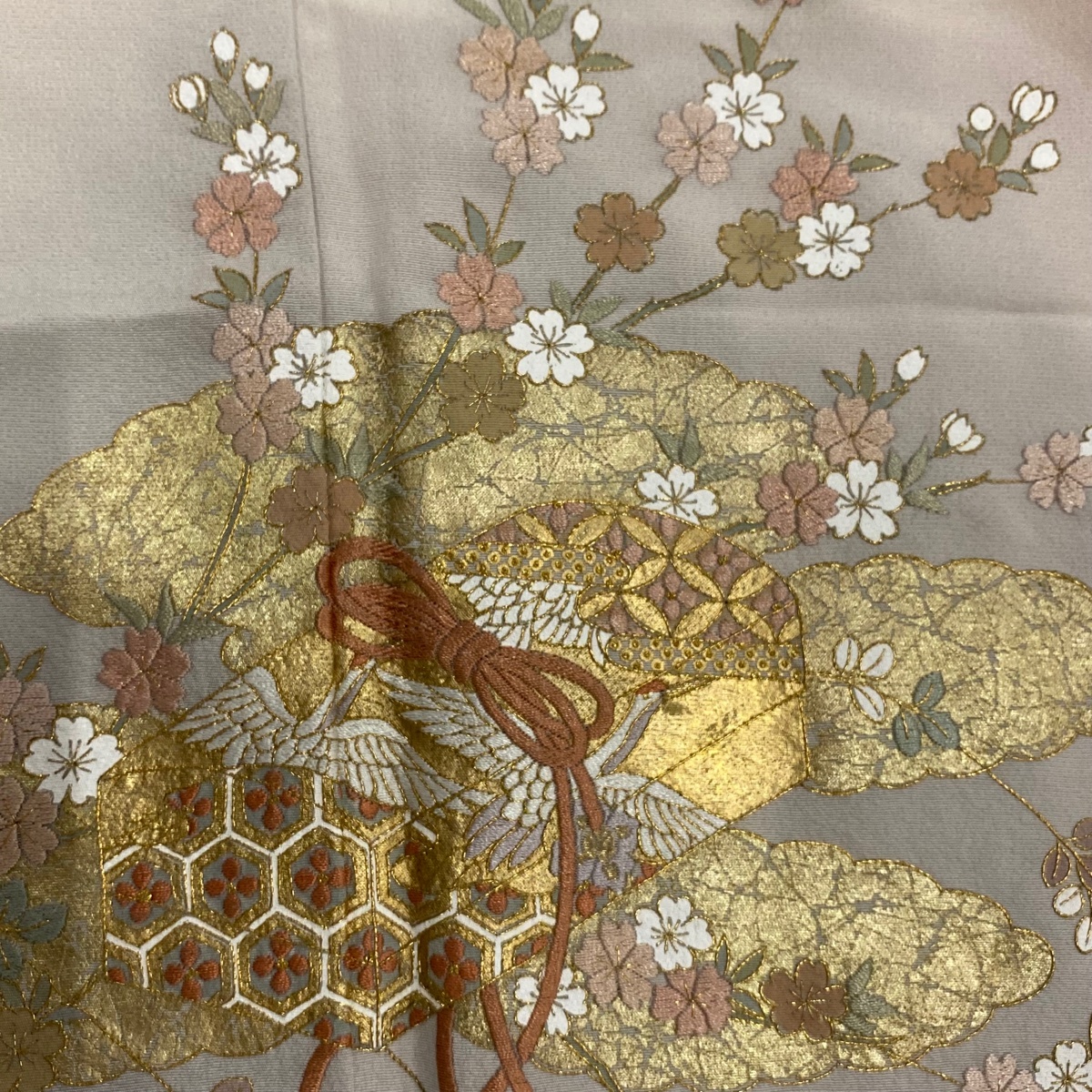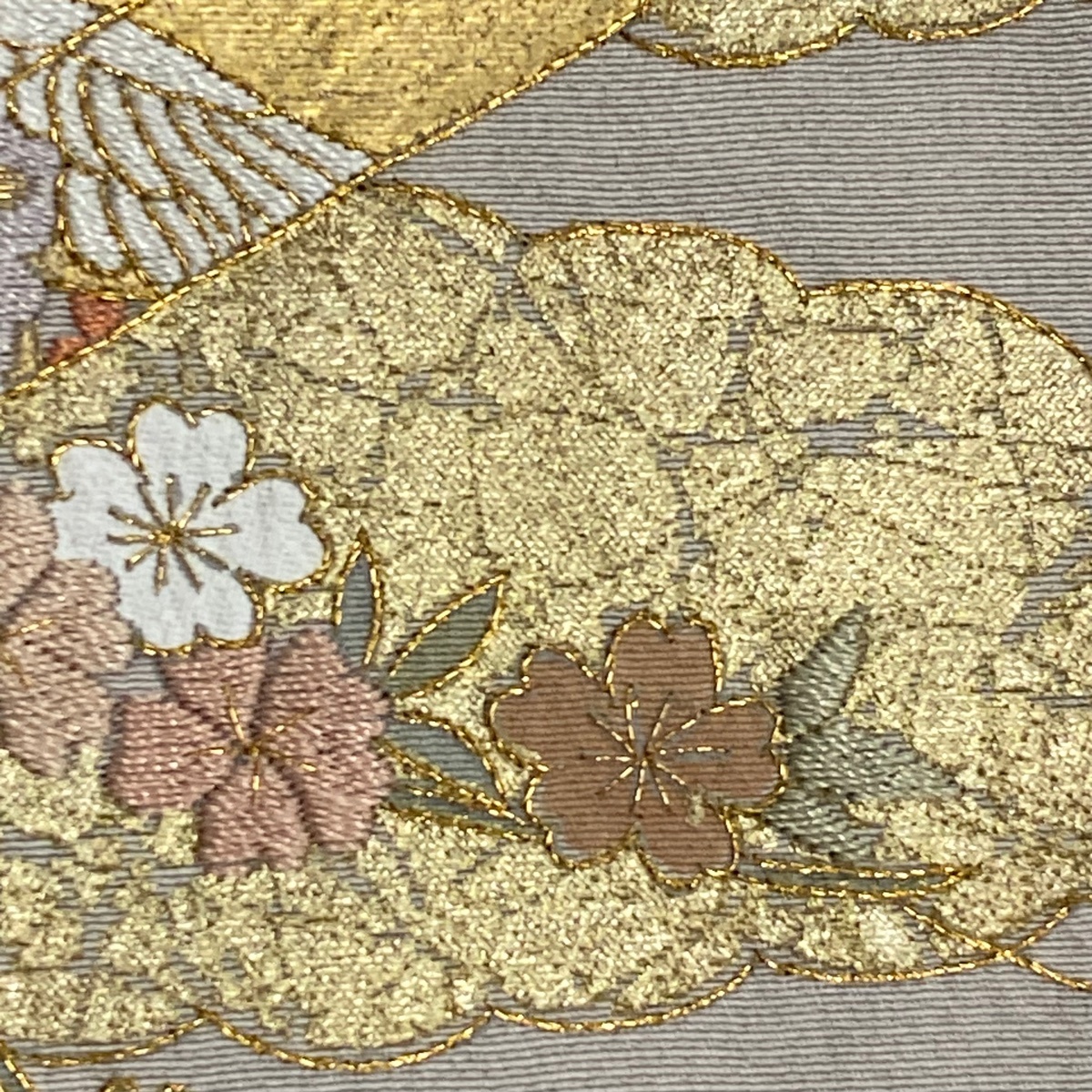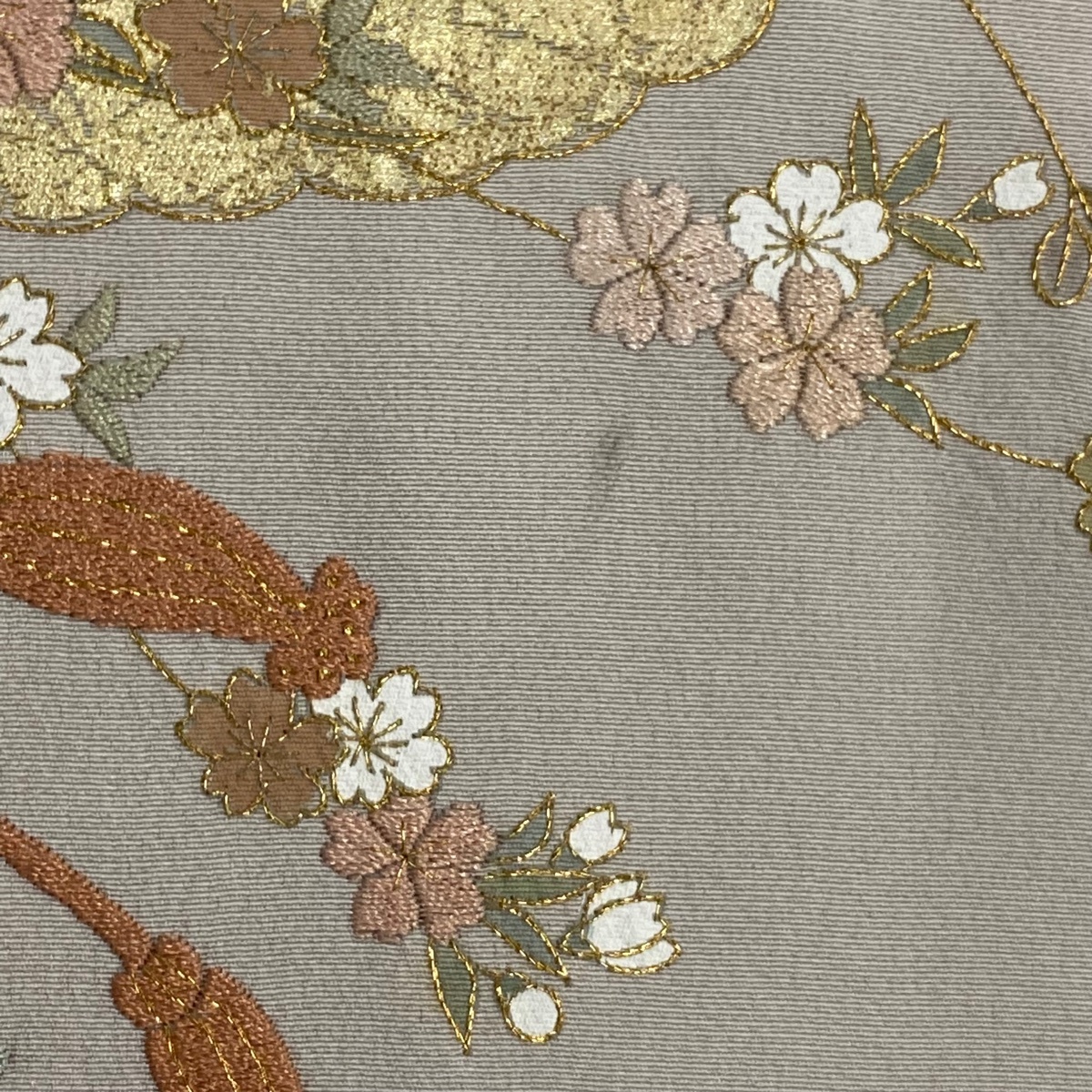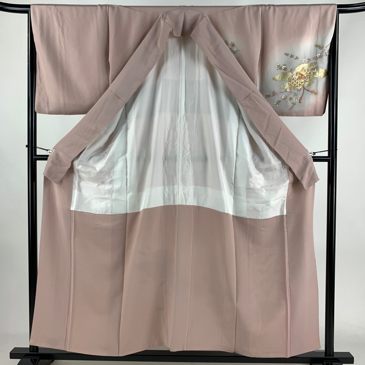 | 訪問着 秀品 文箱 桜 刺繍 金彩 ピンクベージュ 袷 身丈155 裄丈66 M 正絹 【中古】 |