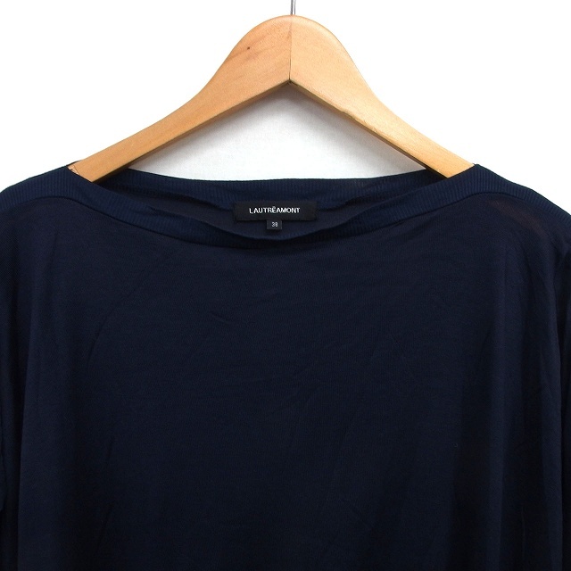 ロートレアモン LAUTREAMONT シアー カットソー リブ ストレッチ ボートネック 長袖 38 紺 ネイビー /NT9 レディース