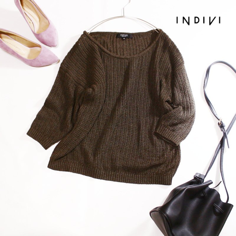 インディヴィ INDIVI 株) ワールド 春 夏 ざっくり ローゲージ 透け ゆったり サマーニットセーター サマーニット カットソー 9号 38 緑