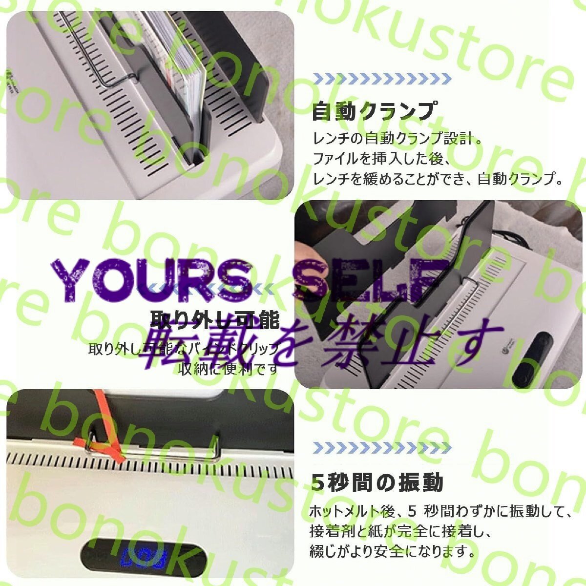 【幅広い用途】- この熱製本機は、フォトアルバム、入札書類、保険証券、契約書、レポートの製本などにも使用できます。個人用と業務用の両方に適しており、オフィスや家庭に欠かせないツールです。