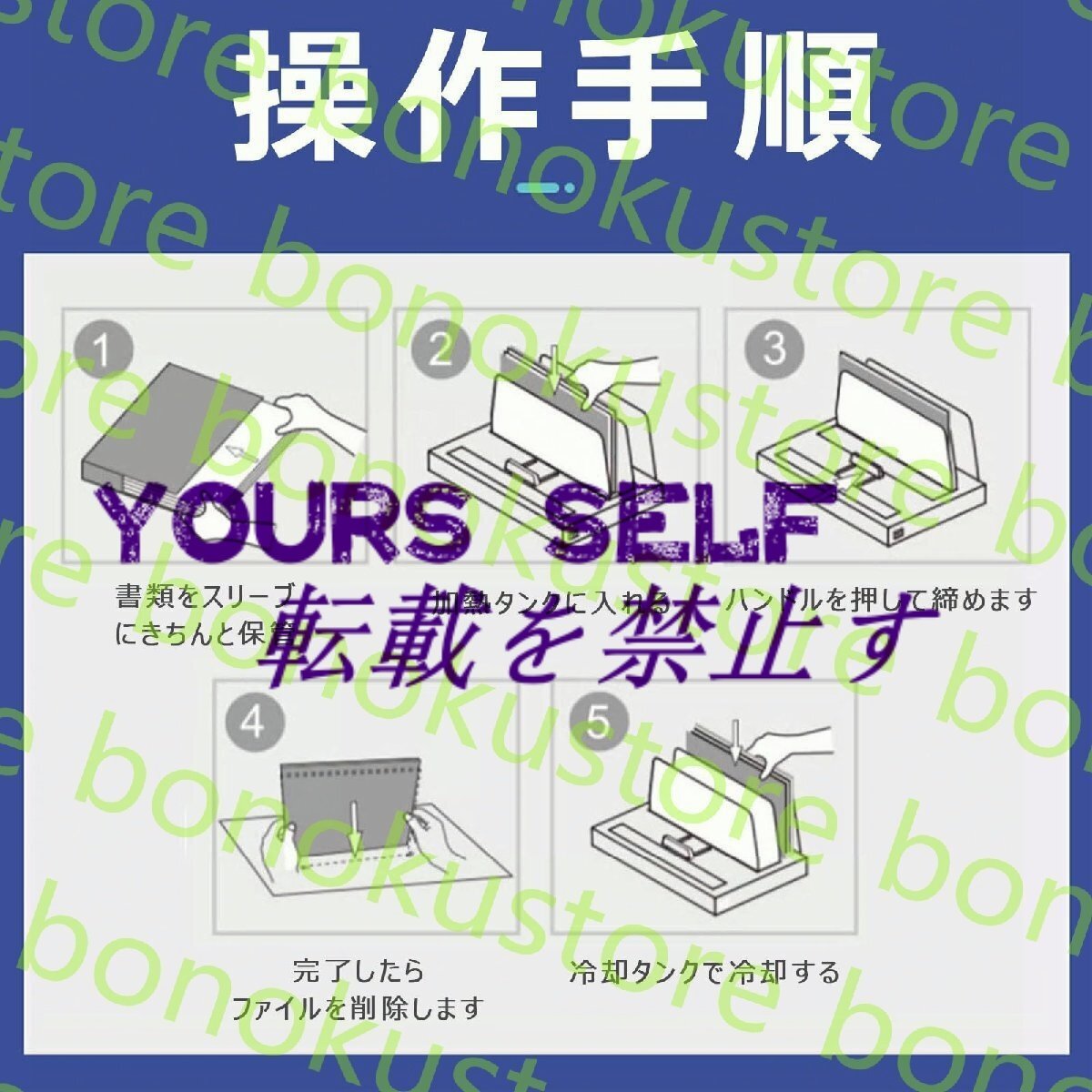【特別設計】- 冷却タンクにはファンが内蔵されており、冷却時間を効果的に短縮します。使用時は、コントロールパネルのカウントダウンがゼロになるまで待ってから取り出し、冷却タンクに入れ(8秒間ビープ音が鳴ります)、1分間冷まします。21×28.5cmのカット可能なホットメルトフィルム5枚が付属しており、本の背のサイズに合わせて自由にカットできます。