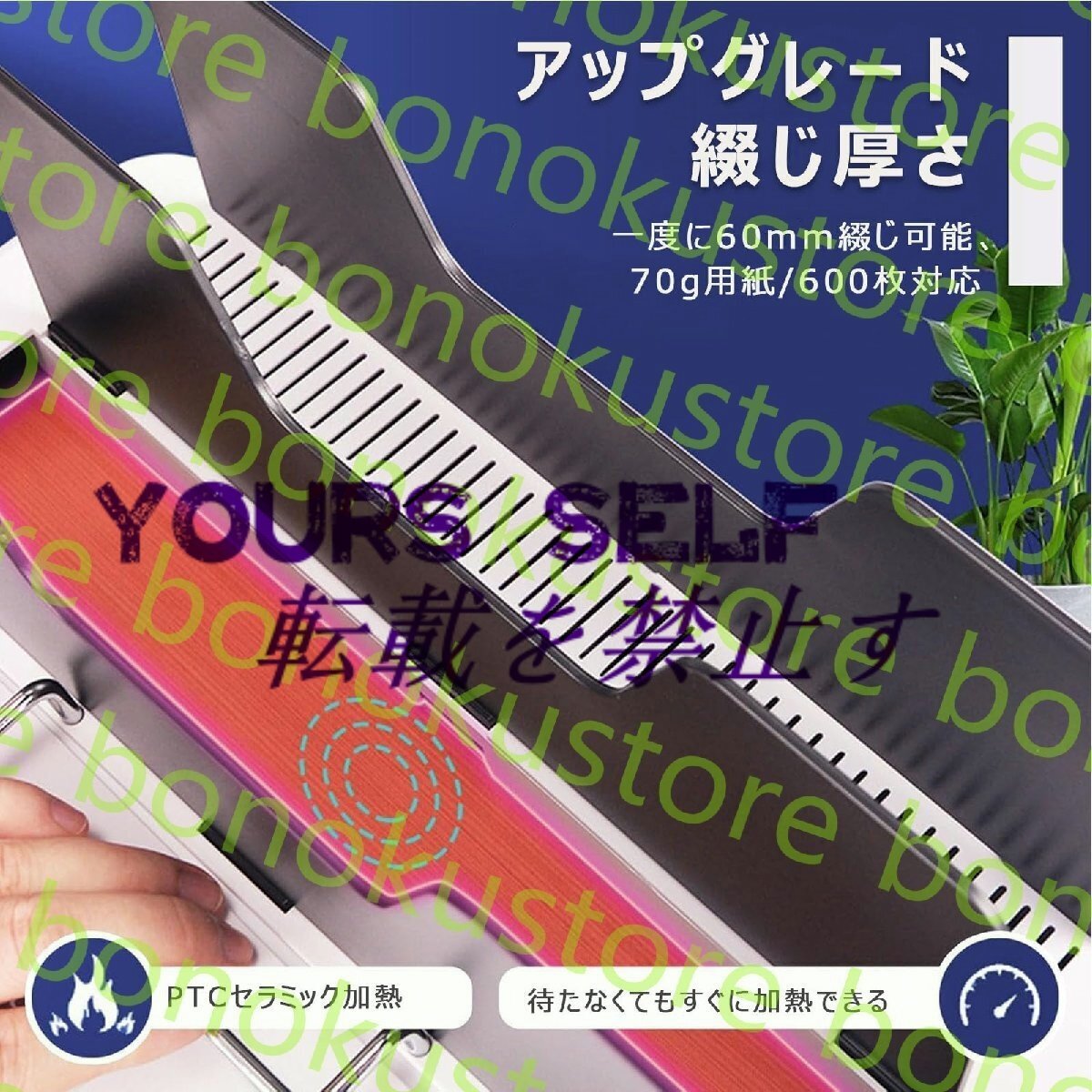 【作業効率を効果的に向上】- 使いやすい設計で、書類を機械に入れてボタンを押すだけで、PTCセラミック加熱要素が残りの作業を行います。複雑な設定や調整は不要で、時間と労力を節約できます。最大60mmの厚さの紙(A4)を製本できる要素。