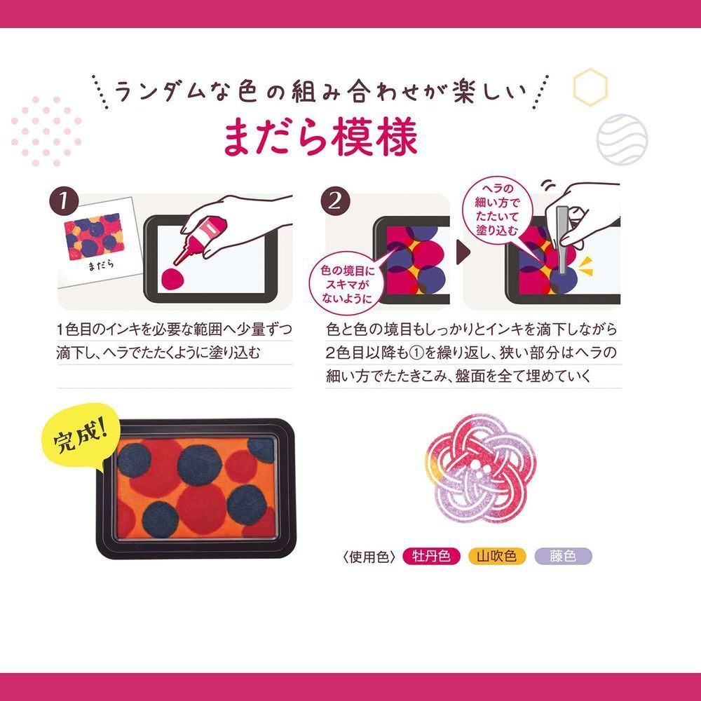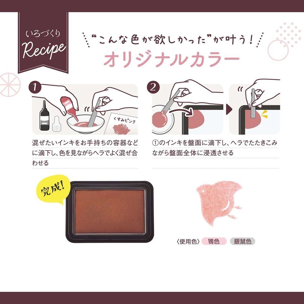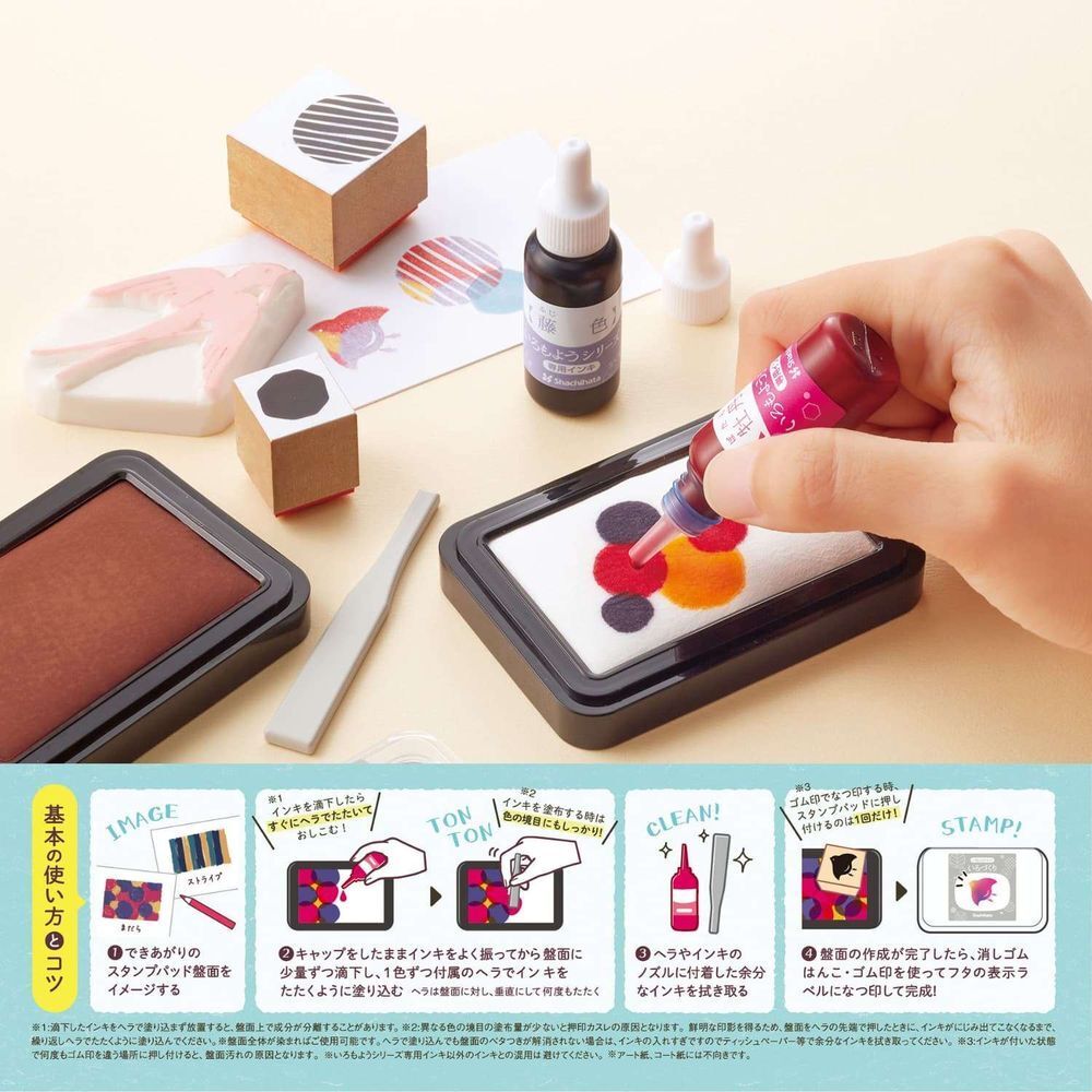 ※シヤチハタ「いろもようシリーズ 専用インキ」以外のインキとの混用は避けてください。