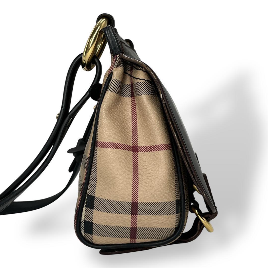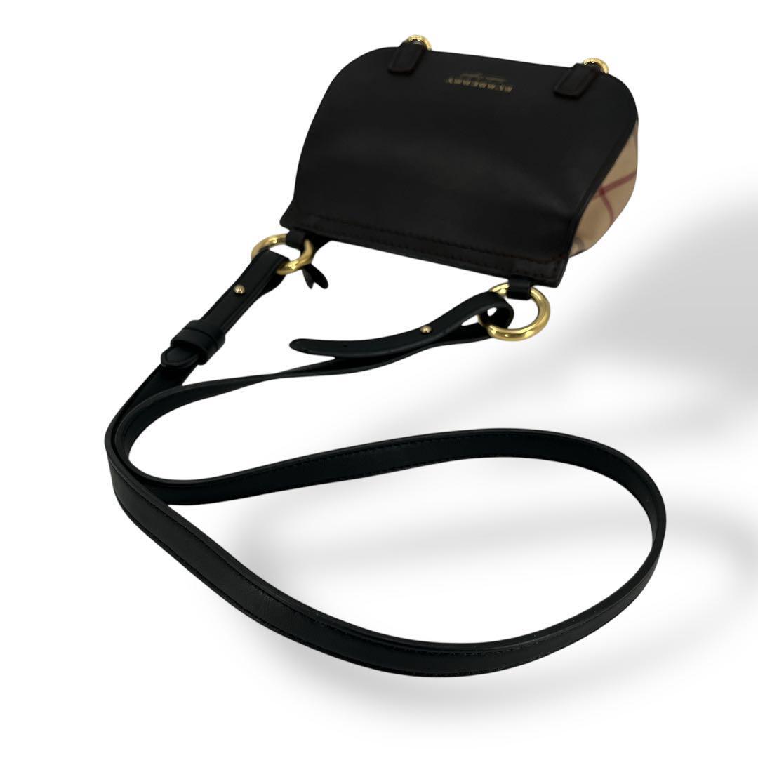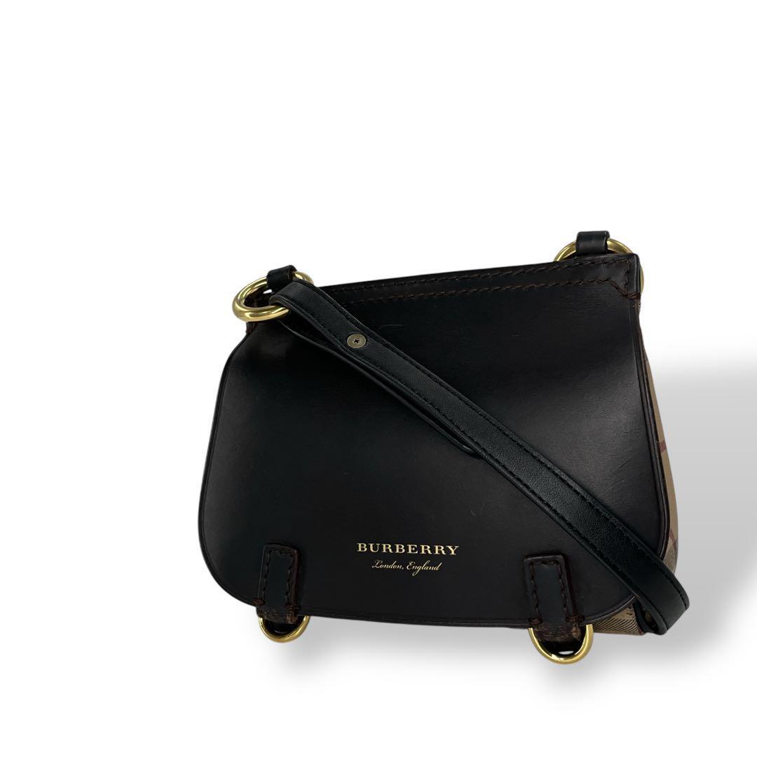 BURBERRY LONDON レザー 黒 ブラック ベージュ ホースロゴ ゴールド金具 フラップ ポシェット