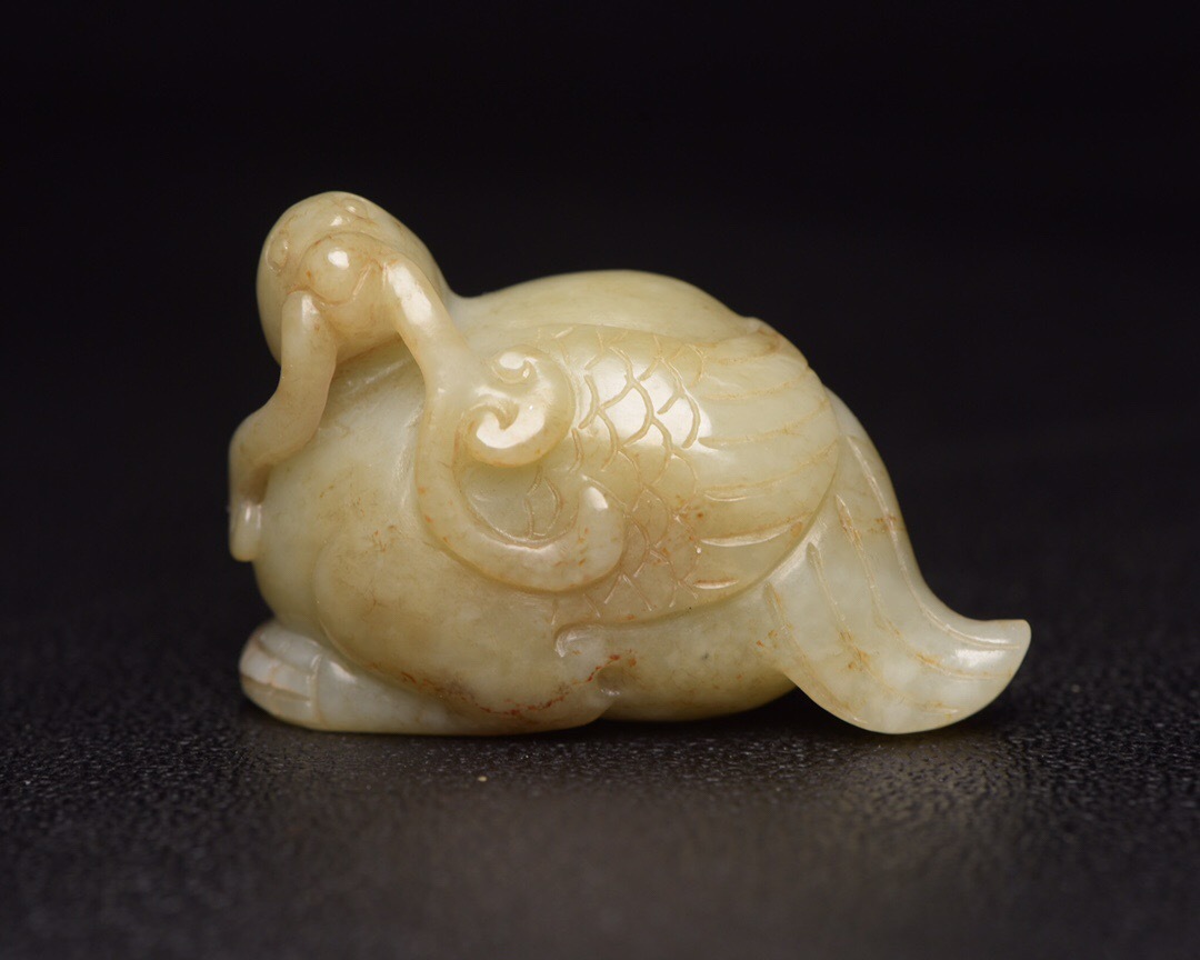| 【蔵友館蔵品・和田玉製・細密彫・鳥如意】・希少珍品・置物・賞物・中国時代美術 |