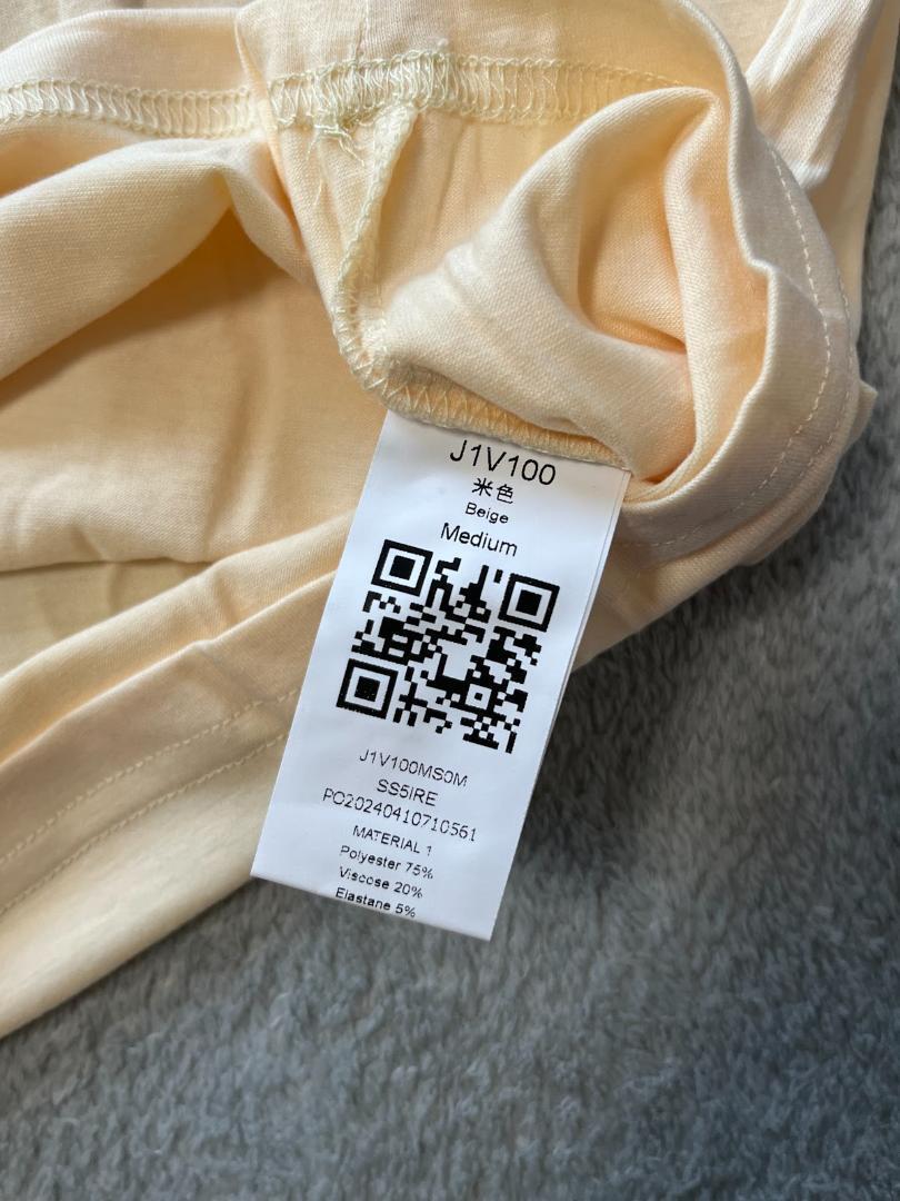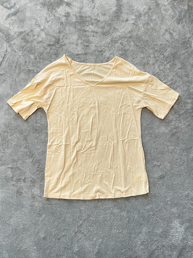 シンプルかつ洗練されたデザインが特徴です。Vネックのデザインは女性らしい華やかさを引き立てつつ、首元の美しいラインを演出します。また、短めの袖丈が腕の細部までスッキリと見せ、よりスタイリッシュな印象を与えます。おしゃれな一面を持ち合わせた、ワードローブに欠かせない一枚です