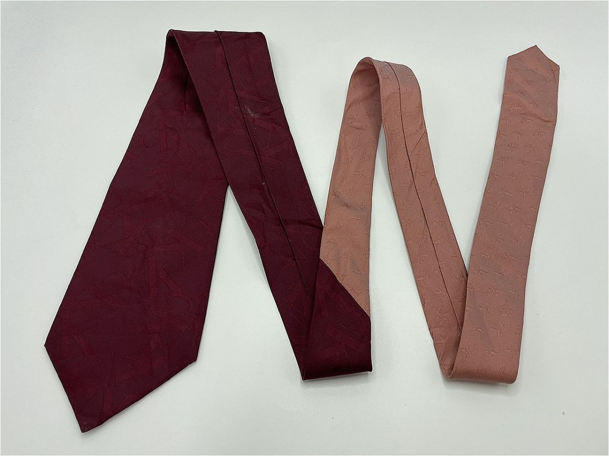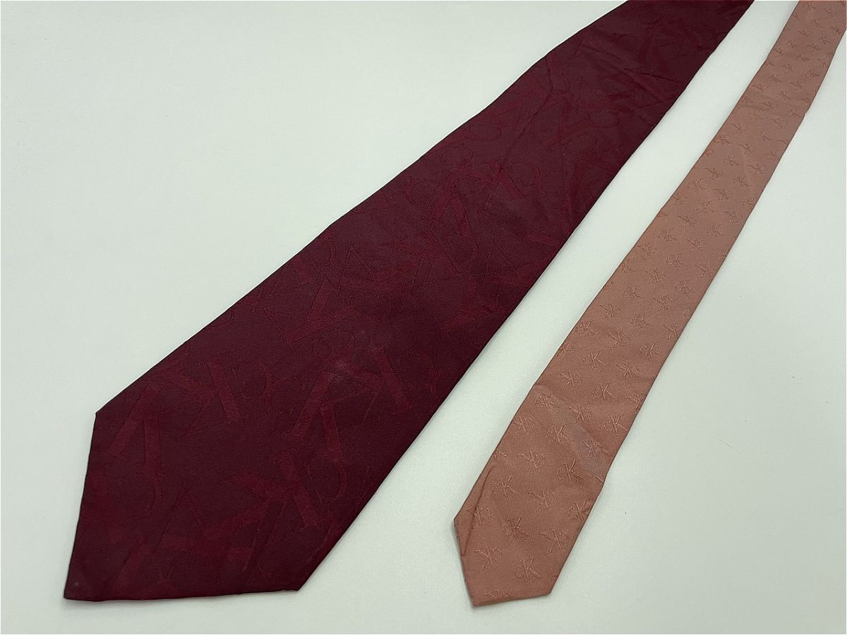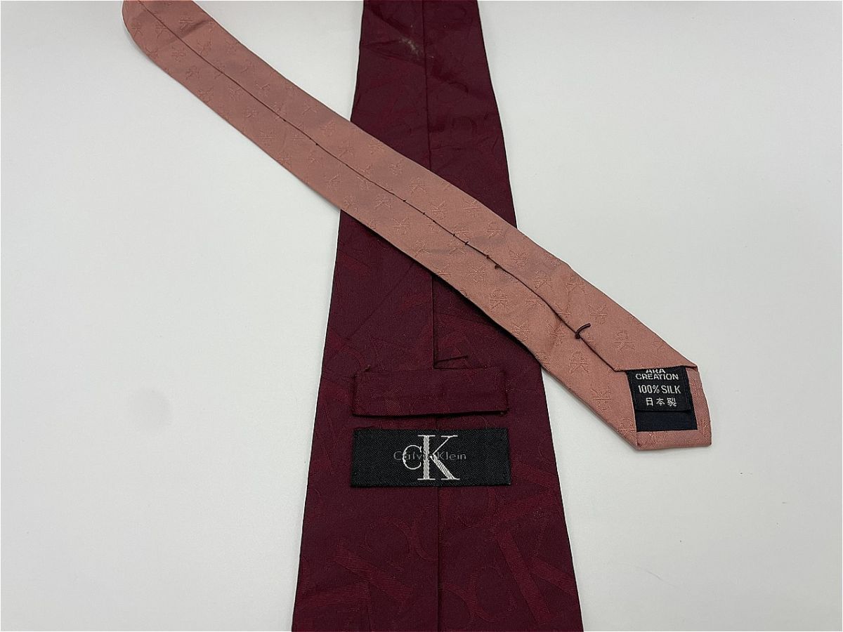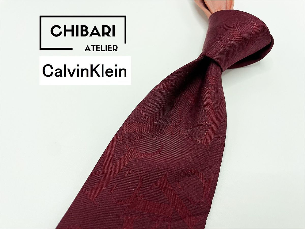 【美品】CalvinKlein カルバンクライン ロゴレタッチ柄 ネクタイ 3本以上 送料無料 メンズ ワインレッド 0404256