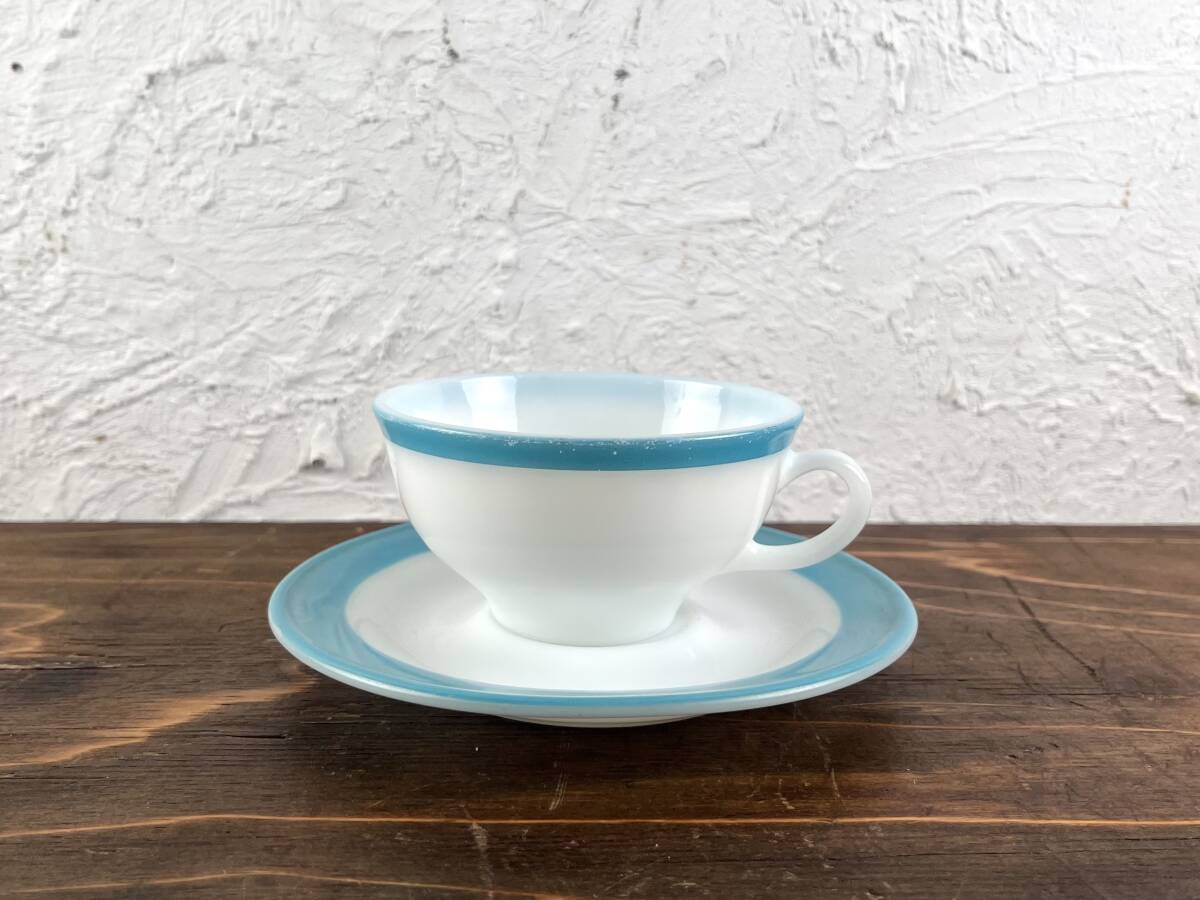 ビンテージ PYREX ミルクガラス カップ&ソーサー アメリカン雑貨 パイレックス ターコイズブルー ミッドセンチュリー