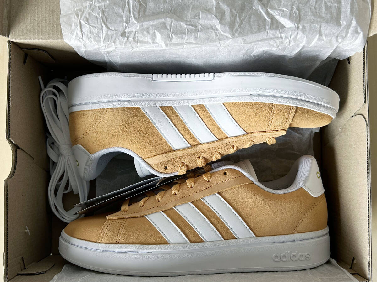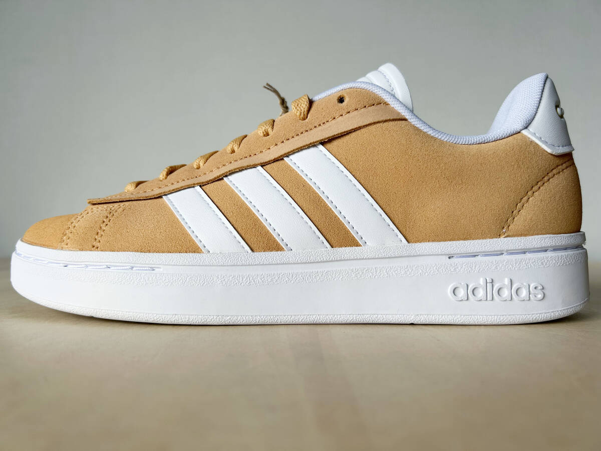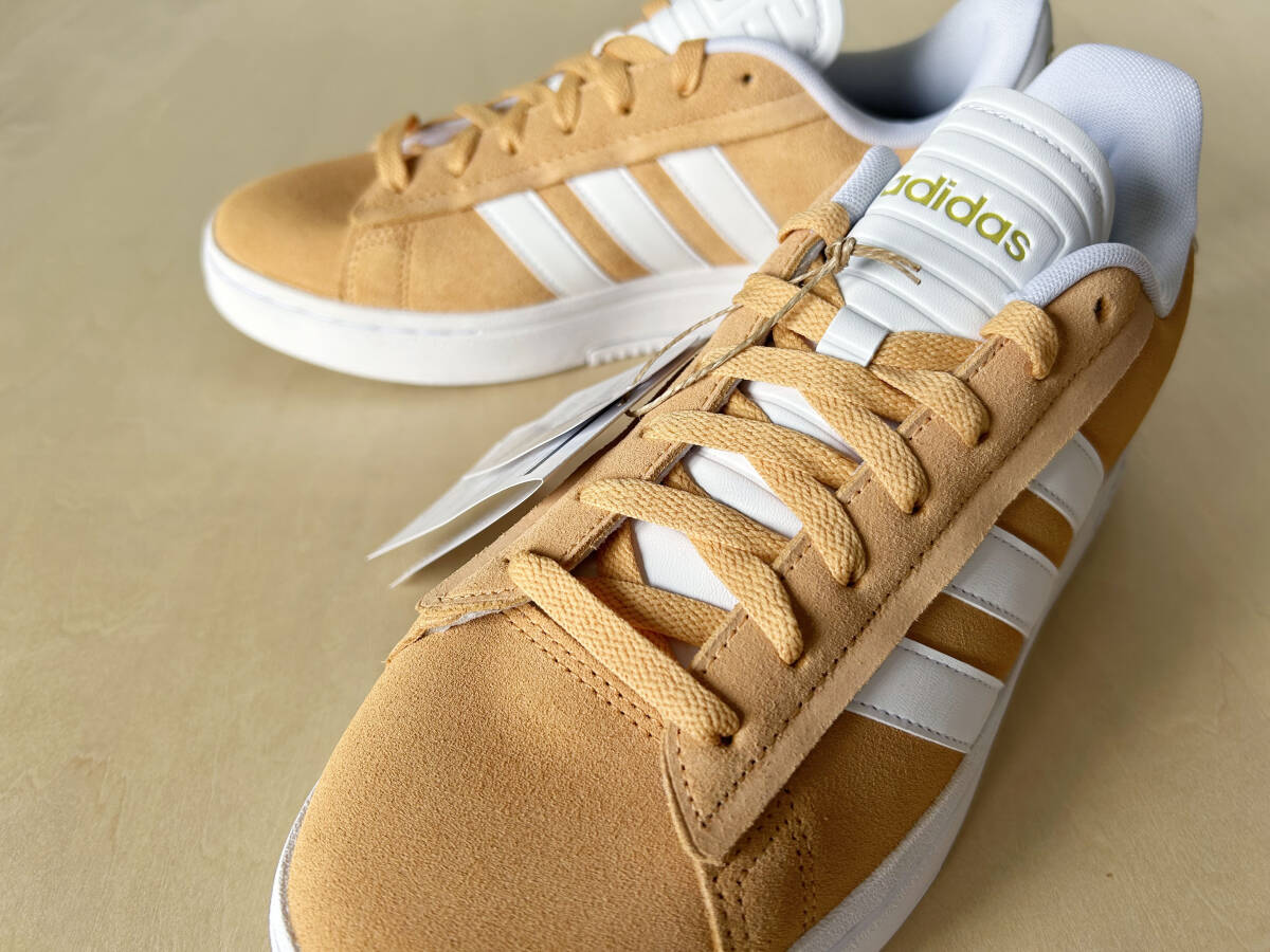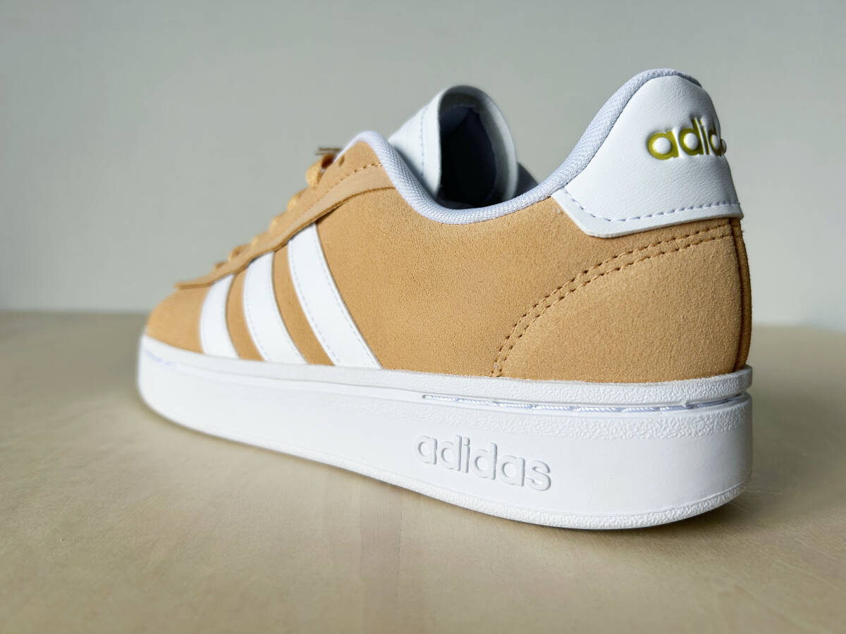 ・グランドコート アルファのシルエットを、ステッチを施したスリーストライプス、成型シュータン、切りっぱなしのエッジでトレンドセッター向けにアップデート