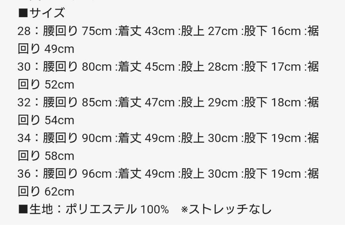 ストレッチなし、ウエストの紐で長さ調節(±5cm)できます。