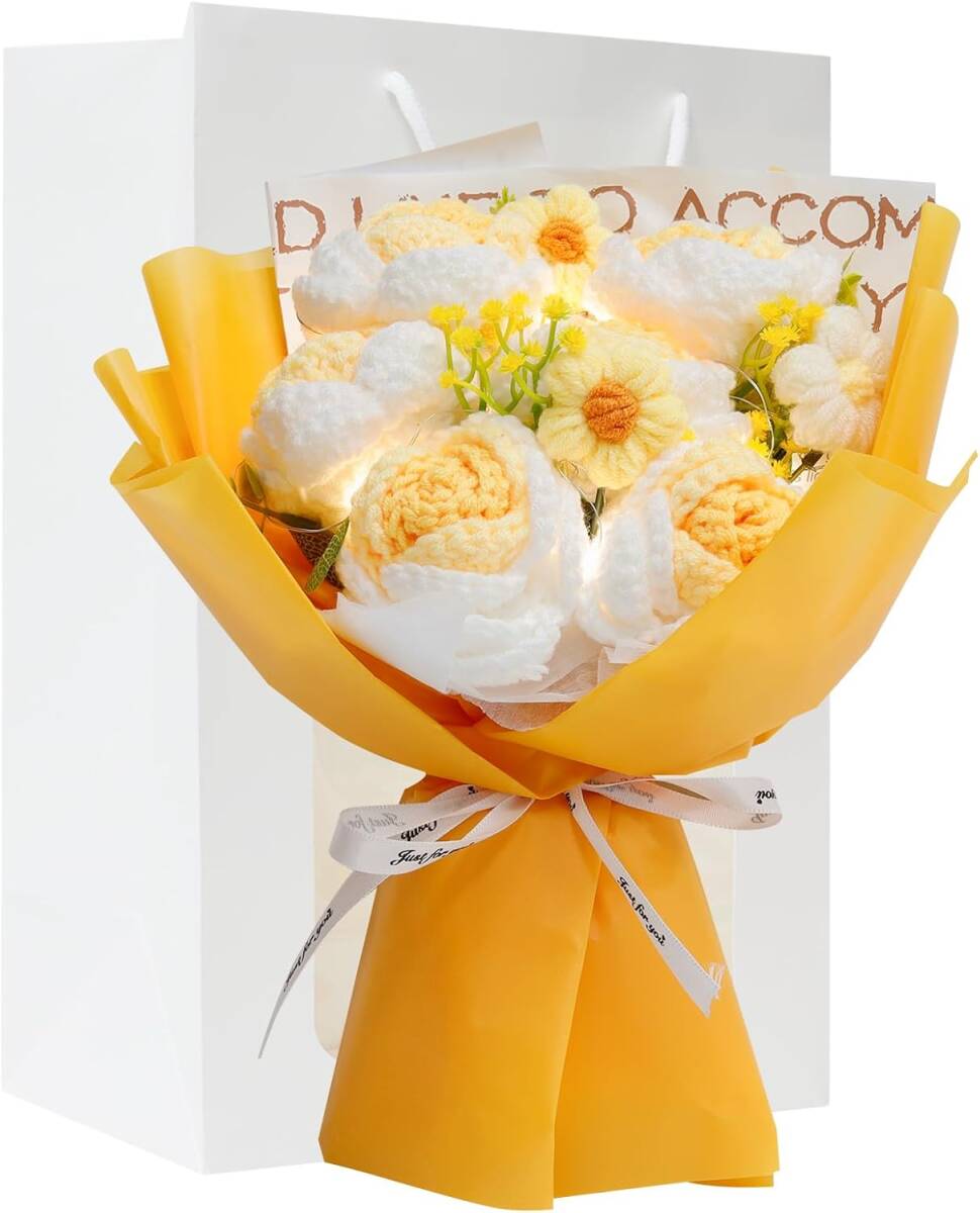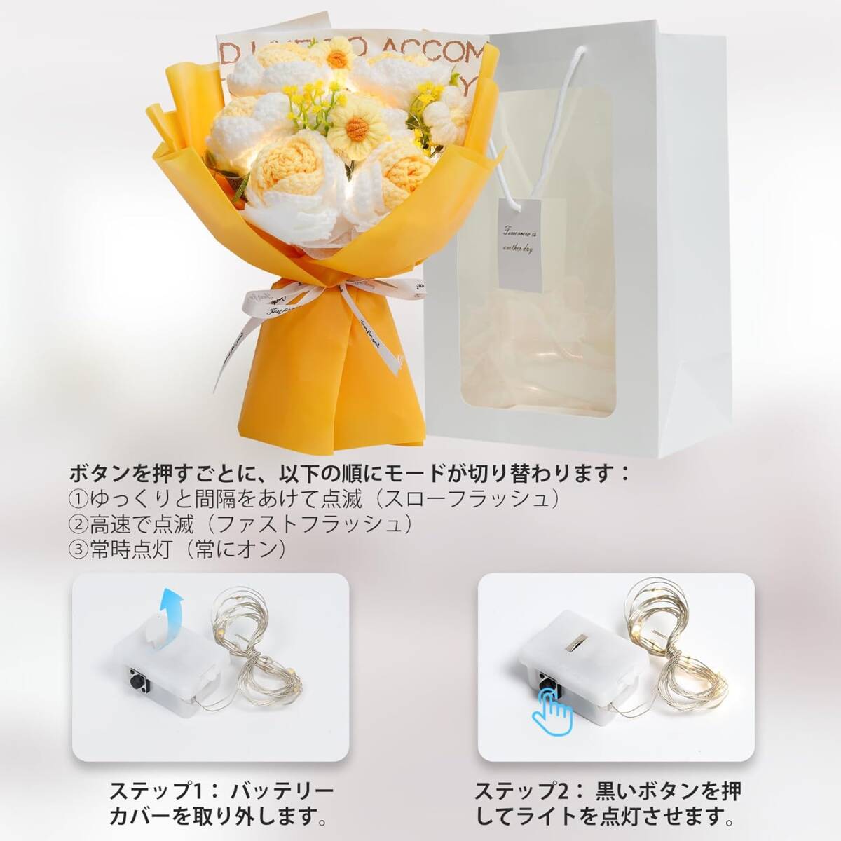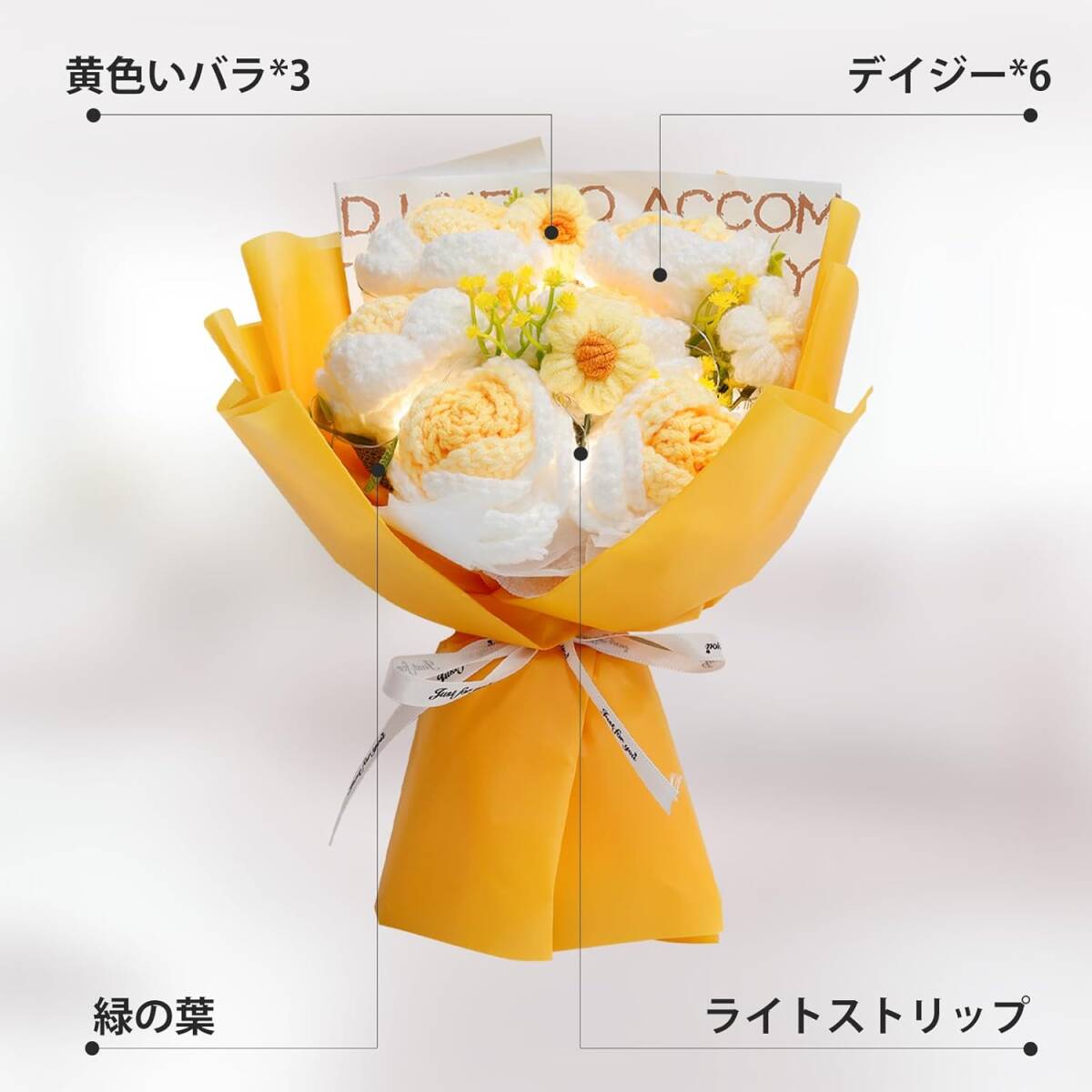編み 造花 花束 LEDライト付き ぬいぐるみ花束 毛糸のブーケ 薔薇造花 バラ デイジー 枯れない花 卒業祝い 可愛い 感謝