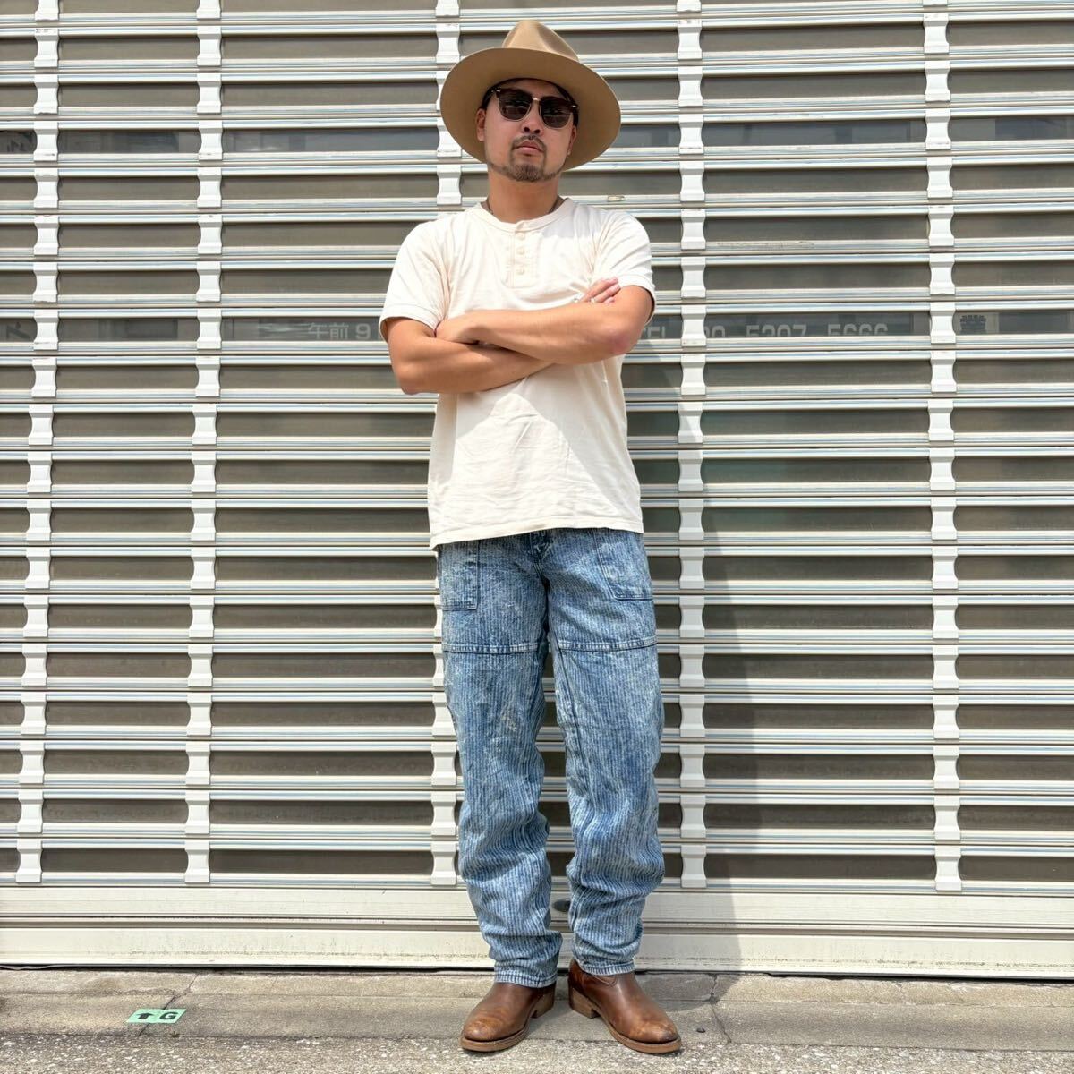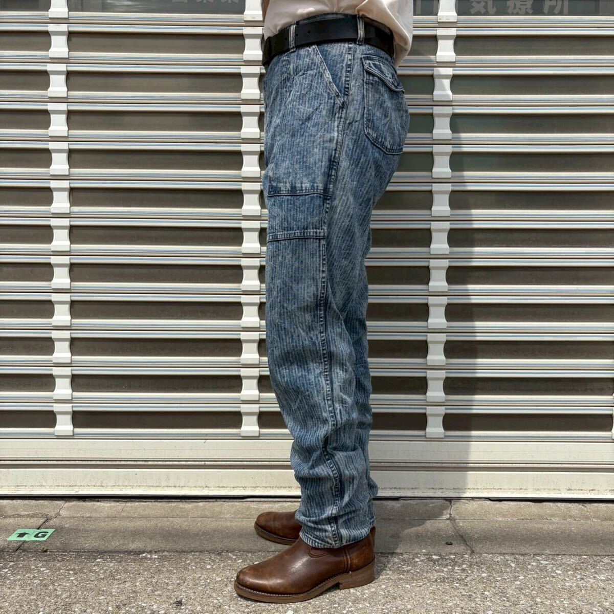 雰囲気ある色落ちや、フロントトップボタンにメタルボタンが搭載され、ヴィンテージのワークウェアらしいディティールが楽しめるアイテム。