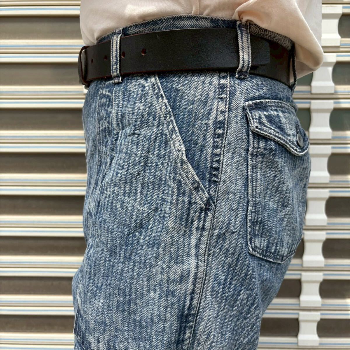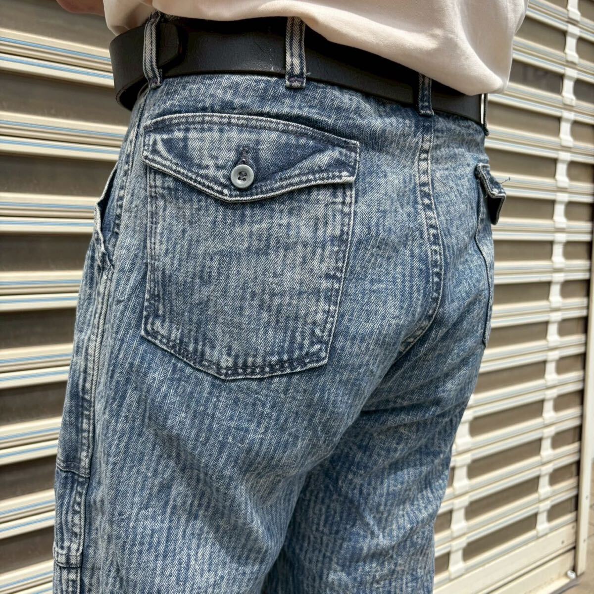 ヘリンボーンツイルのベイカーパンツ型というレアパターンな一着です。