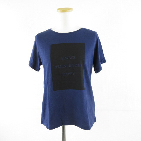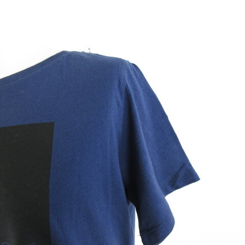 ショコラフィネローブ chocol raffine robe Tシャツ 半袖 プリント 紺 F *A494 レディース