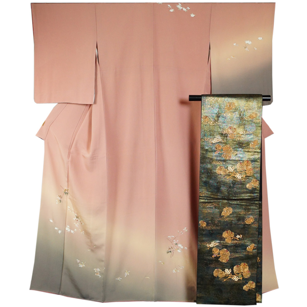 | 品 名 | 着物セット 付下げ訪問着・袋帯 2点 セット ぼかしに枝花模様 Mサイズ 【訪問着 中古 訪問着 セット 中古 リサイクル着物 付下げ 正絹 着物 訪問着 購入 販売 】 | ||