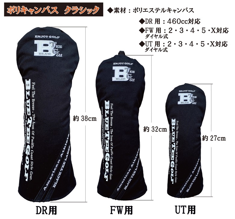 ◎オークション♪【DR:ブラック】ブルーティーゴルフ【ポリキャンバス クラシック】ドライバー用ヘッドカバー DHC-001 送料無料