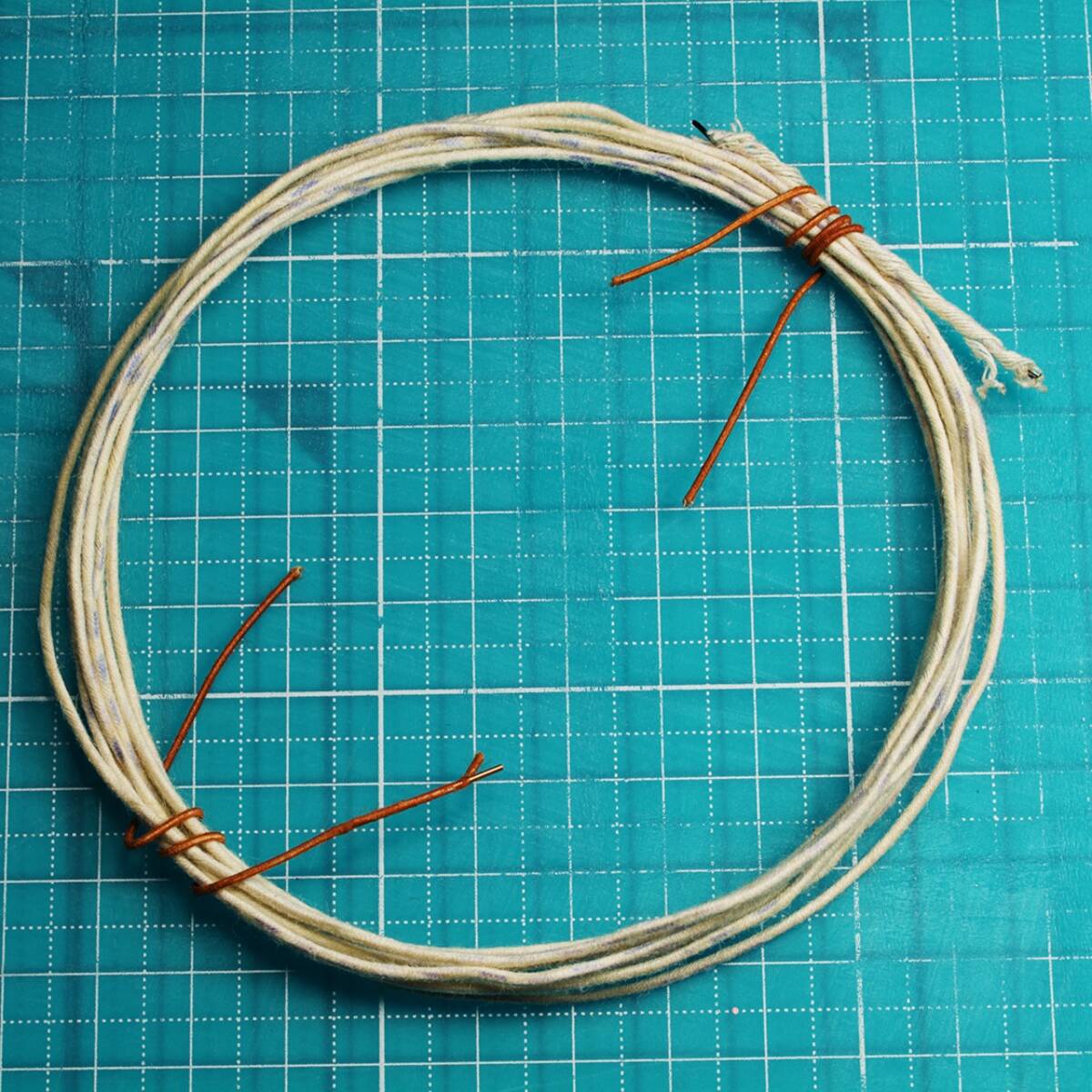 超貴重 AWG22 スーパーブラックエナメルワイヤー ウエスタンエレクトリック(Western Electric)製 ダブルシルク&ダブルコットン巻き 年代は1930’~40’ではと推測しています。 インターコネクトケーブルとして使用されていたと思われます。 鉛箔で巻いてありました。 真っ黒のエナメルです。やや厚めに塗装されています。 このようなエナメルの掛け方は見たことがありません。 ウエスタンの本気というものを見た思いです。 このブラックエナメル線の1本ずつは、 通常のダブルシルク&ダブルコットンで巻いてありますが、 合計23本を6層の行程で超固く包んでありました。 途中に鉛箔の層があります。写真をご覧下さい。 (美音のためのヴィンテージ線材のエナメルの削り方・裸線も磨くように削ることを推奨) 超硬刃精密カッターを使用して手で削ることをお薦めします。(濡れたティッシュを準備しておきます) 細い線材については刃の角度を余り立てないようにして、 線材を360度ゆっくり回転させながら丁寧にエナメルを削り落として下さい。 エナメルがなくなったと感じたところからさらにもう少しだけ磨くように削ると綺麗な銅の光を感じてきます。 そこまで時間を掛けて綺麗に磨くように円形に削って下さい。 このように接触部分に気を配ることで音は相当に変わります。 急いでササーッとやってしまいますと、 部分的に痩せた音になったり、微妙にノイジーになったり、と、 その線材の持ち味が出ないことになりますので、 エナメル線の削りを重要に捉えられた方が良いです。 裸線の場合も表面は酸化していますので、 磨くように綺麗に削ることで音はさらに良くなります。 |