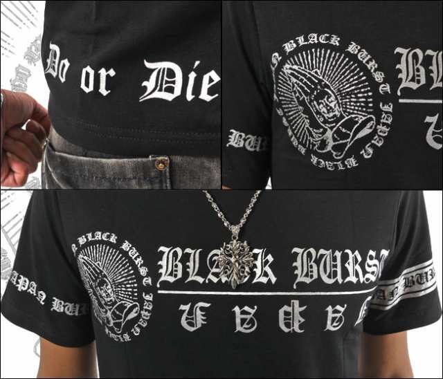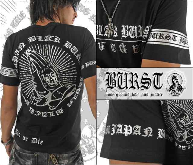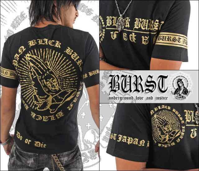 BURST JAPAN ブランドロゴプリント&スカルプレイハンド合掌半袖Tシャツ70532  新品 ブラック×ゴールド XL