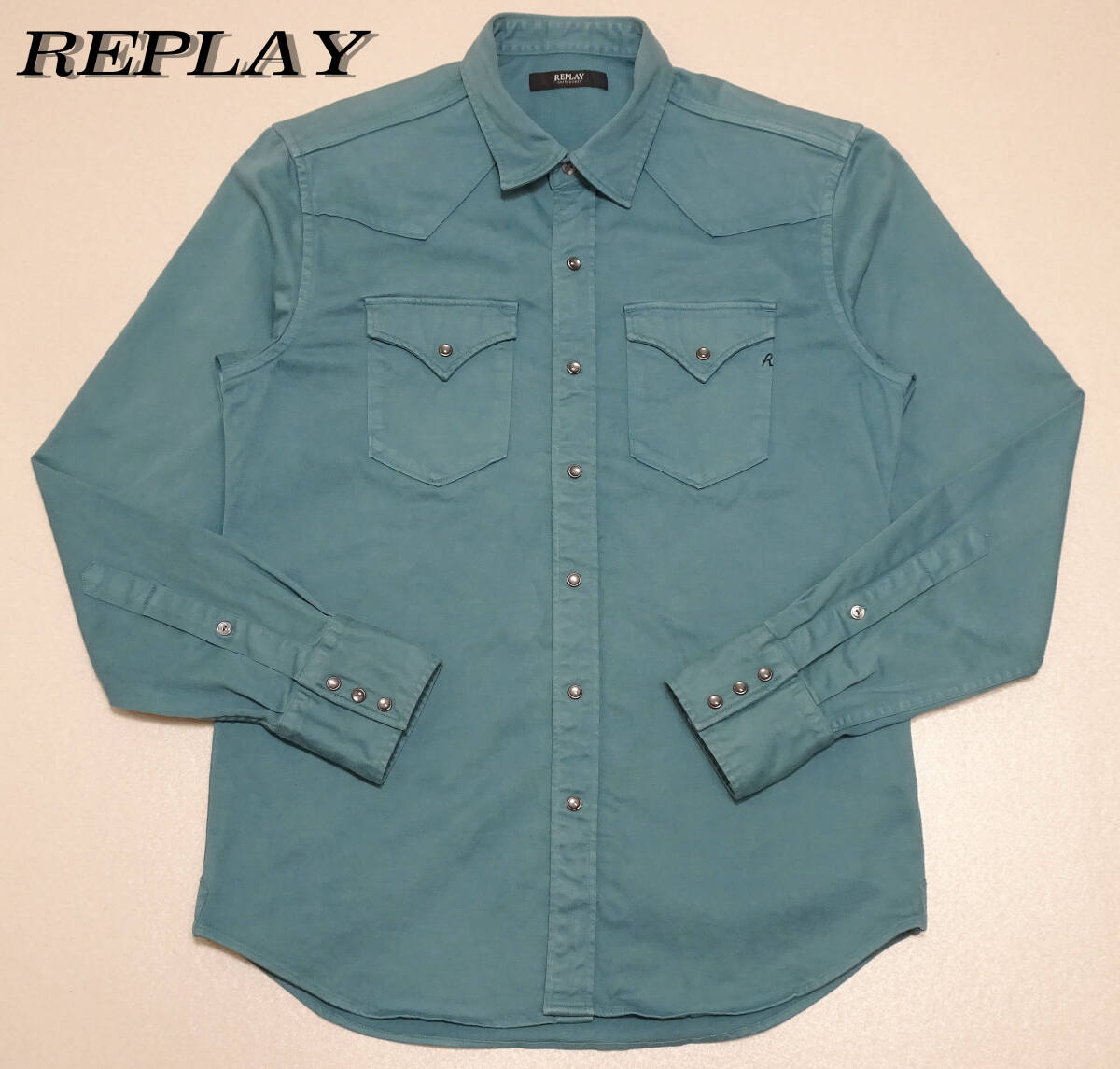 REPLAY(リプレイ)/コットン/ストレッチ/ユーズド加工/長袖シャツ/M