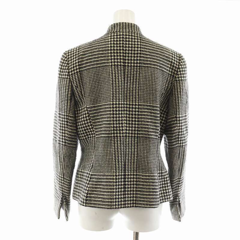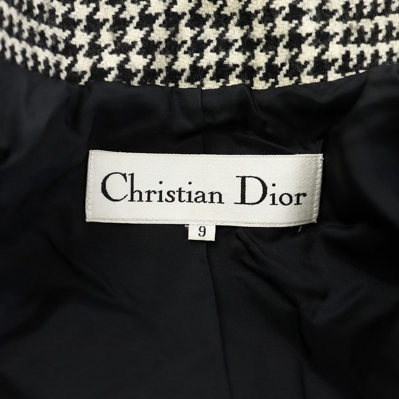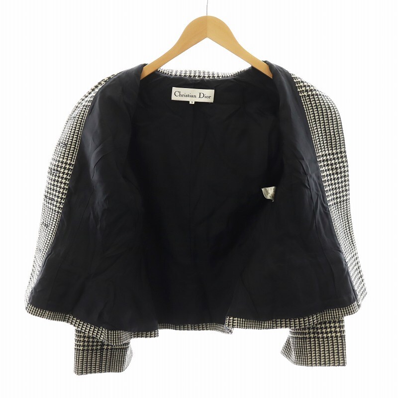 クリスチャンディオール Christian Dior ノーカラー ジャケット ハウンドトゥース 千鳥格子 ウール 9 黒 白 MD06M1190 レディース
