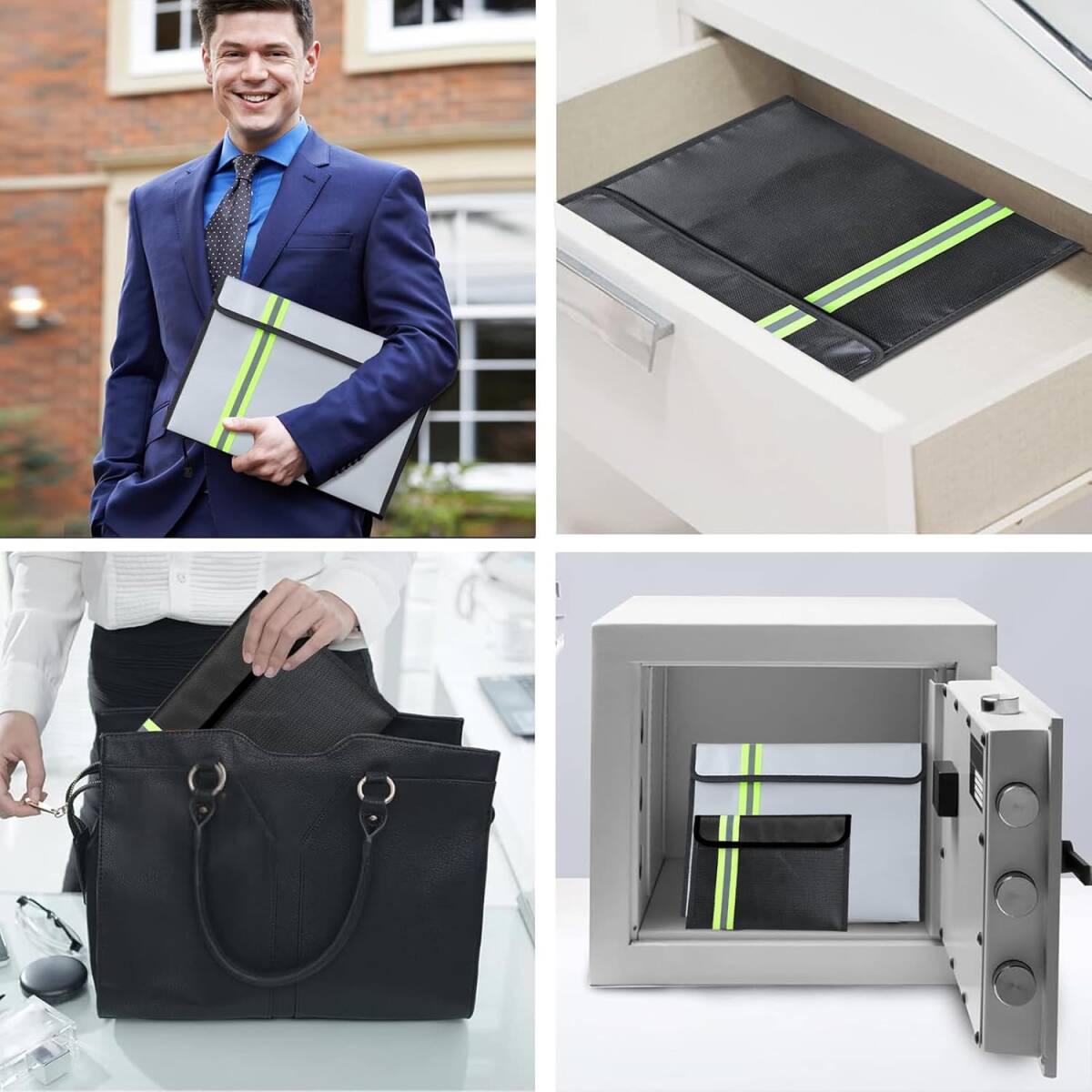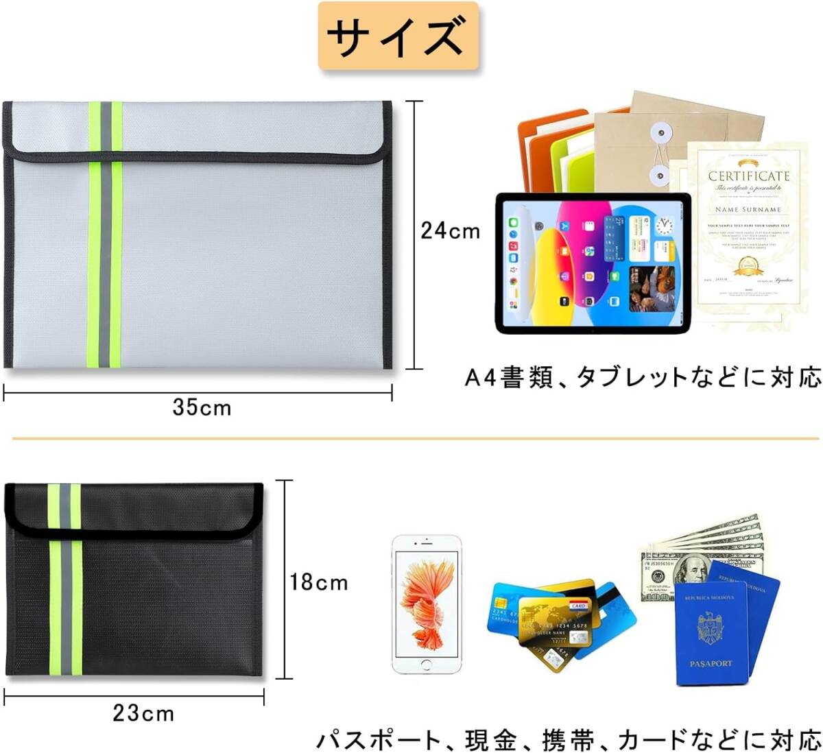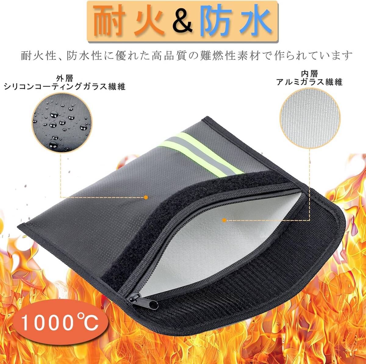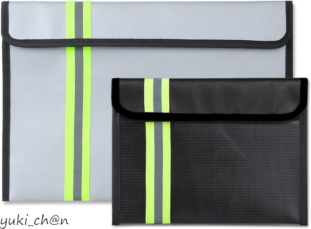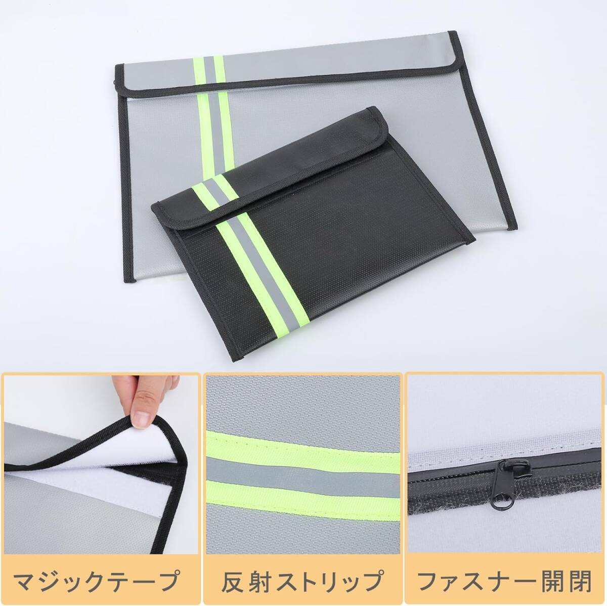 耐火バッグ 集金袋 ファスナー式 防火袋 防水 防災 防火バック 書類保管ケース 貴重品入れ オフィス 耐火袋 耐火収納ケース 黒M+銀灰色L