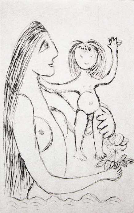 ■★北川民次 【水浴の母子】 エッチング 直筆サイン エディション有り