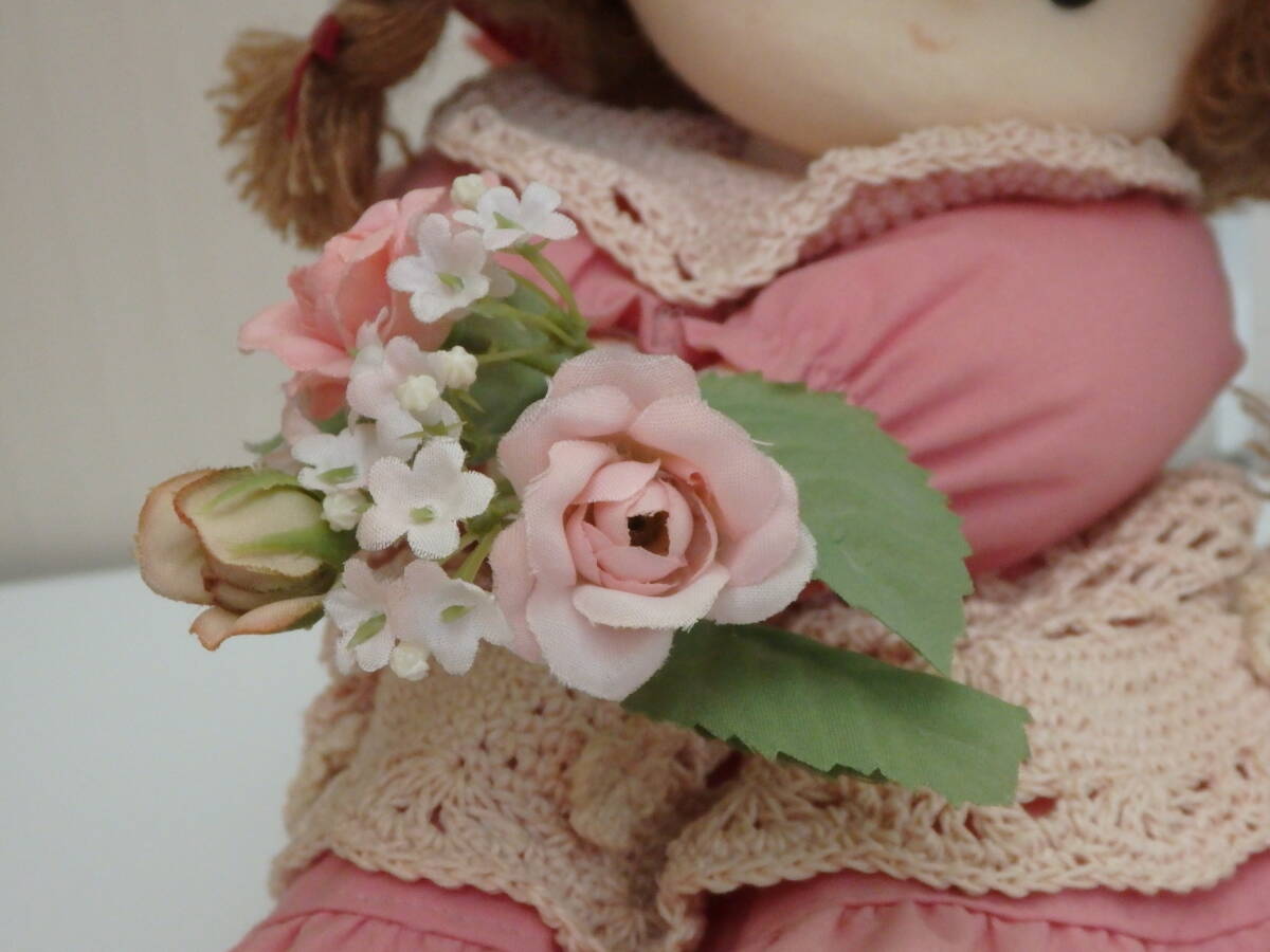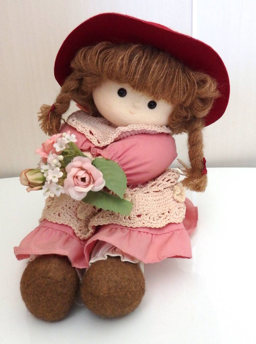 レトロ 当時物★首振りオルゴール人形 花束を持った女の子★ネジ巻き★曲名 小さな世界 It's a Small World★動作確認済み