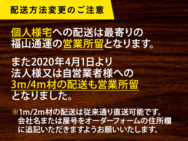 ■3メートル材は,中国地方と長野県の法人様(自営業含む)以外は営業所留となります。