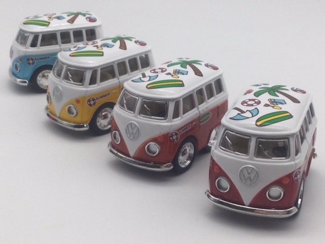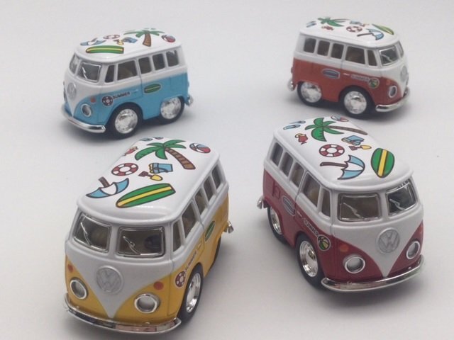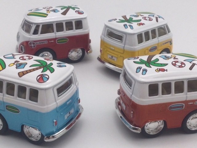 手のひらサイズのワーゲンタイプ2バス サマーバージョンのミニカー4色コンプリートセット ワーゲンタイプ2 コンビ1962年モデルが可愛いデフォルメタイプになって登場!! 手のひらサイズのミニカー4色コンプリートセット! 赤、黄、メタリックブルー、メタリックオレンジの 4色。 タイプ2ならではの2トーンカラーバージョン サイズ:全長約5センチ 幅3センチ 高さ3.3センチ プルバック機能付きですのでチョロQみたいに走らせることができます! ボディはダイキャストメタル製。 シャーシや内装はプラスチック製。 内装はベージュ。シングルバンパーのヨーロッパ仕様! フォルクスワーゲンエンブレムもバッチリ再現されています。 小さなミニカーセットですので飾る場所を選びません。 4台並べてあげるとすごく可愛いですよ。 小さなショールームの様な雰囲気を再現出来ます。 お部屋に車内にいかがですか? *こちらの商品は箱付きではありませんのでご注意くださいませ。 ●神経質な方にはお勧めできません● 1台1台検品し丁寧に梱包させて頂きますが、輸入時からのかすかな汚れ、塗装ミス、擦り傷等はあるかもしれません。 |