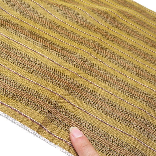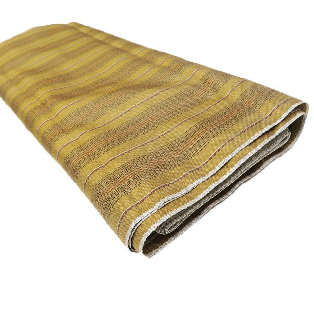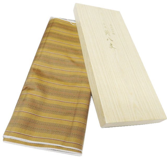 サイズ 1292cm × 38cm 素材 正絹 商品ランク B ●お色 桑茶色 多色 東京都八丈島に伝わる草木染の絹織物【黄八丈】。 島に自生する植物の煮汁で染められており、黄色を主体にしたものを黄八丈、黒色を主体にしたものを黒八丈、鳶色を主体としたものを鳶八丈(茶八丈)と呼びます。 1977年(昭和52年)、島の女性たちの熟練した手織りによって生み出される本場黄八丈は、八丈島の重要な特産品として島の経済を支え、国の伝統的工芸品に指定されました。 特徴ある絹摺れの音にまで魅力が詰まった逸品です。 この機会に、是非お買い求め下さいませ。 未仕立てのお品物になります。 段(色味の違い)がございます。 一部商品は実店舗・他サイトでも並行して販売しておりますので売り切れの際はご了承ください。 その他多数販売中 ga | ||||||