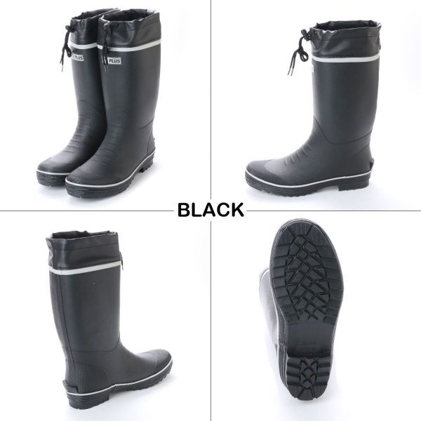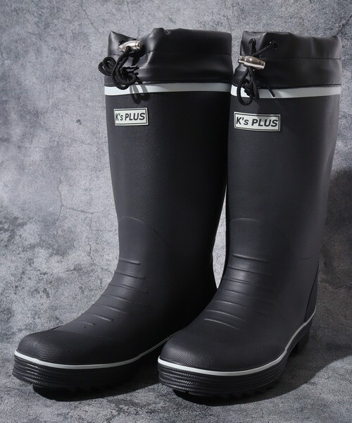 アウトレット メンズ レインブーツ 24.5cm ブラック ラバーブーツ ワークブーツ ゴム長靴 巾着付 ヒールキッカー 防水 防滑底 kp_17302