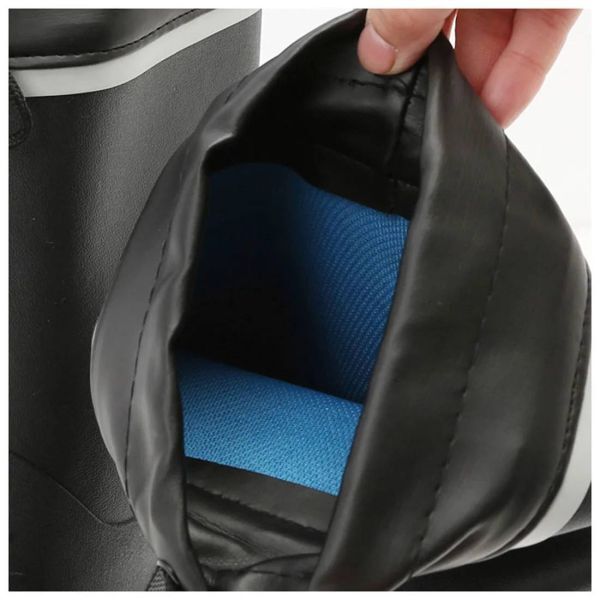 広めの履き口部分にはフェイクレザーの幌を合わせており、ドローコードでキュッと絞ることが可能。雪/雨/風/ホコリの浸入を防ぎ、足元をしっかりガードします。