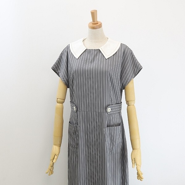 | ◆Jane Marple Dans Le Salon ジェーンマープル ドンルサロン ストライプ柄 クレリックカラー ワンピース グレー×ホワイト M | |
