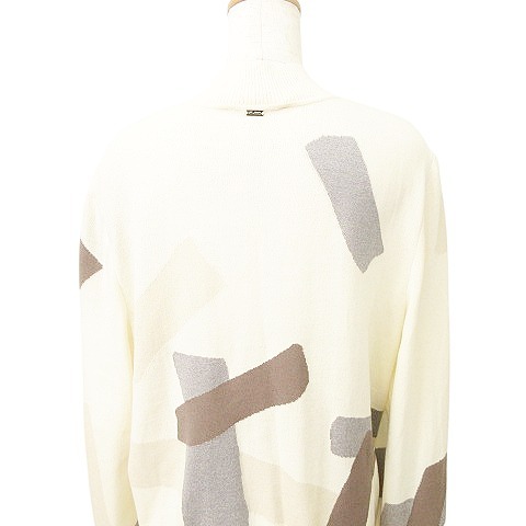 セントジョン ST.JOHN 美品 ニット ジップアップ ブルゾン 羽織 総柄 薄手 Lサイズ アイボリー レディース