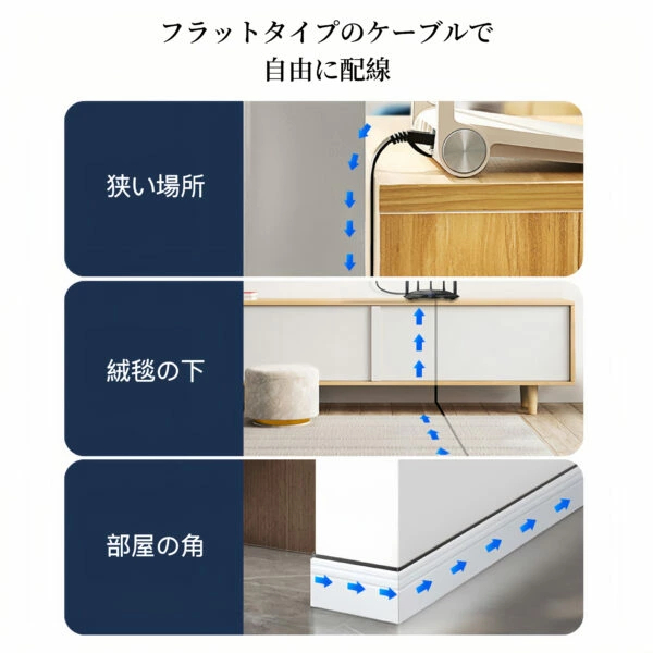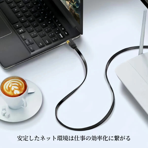イーサネット ブラック ホワイト 薄型 フラットLANケーブル ケーブル 高速光通信 10ギガビット Windows11対応