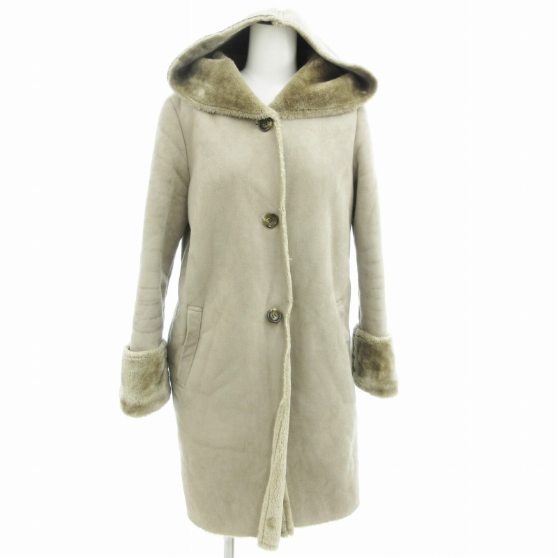 ナノユニバース nano universe フェイクムートンコート フード ミドル丈 36 グレージュ /TZ ■GY18 レディース