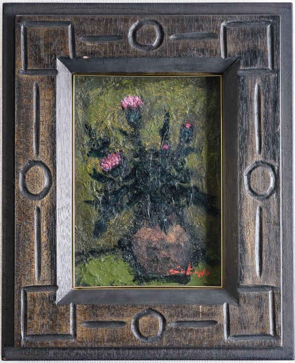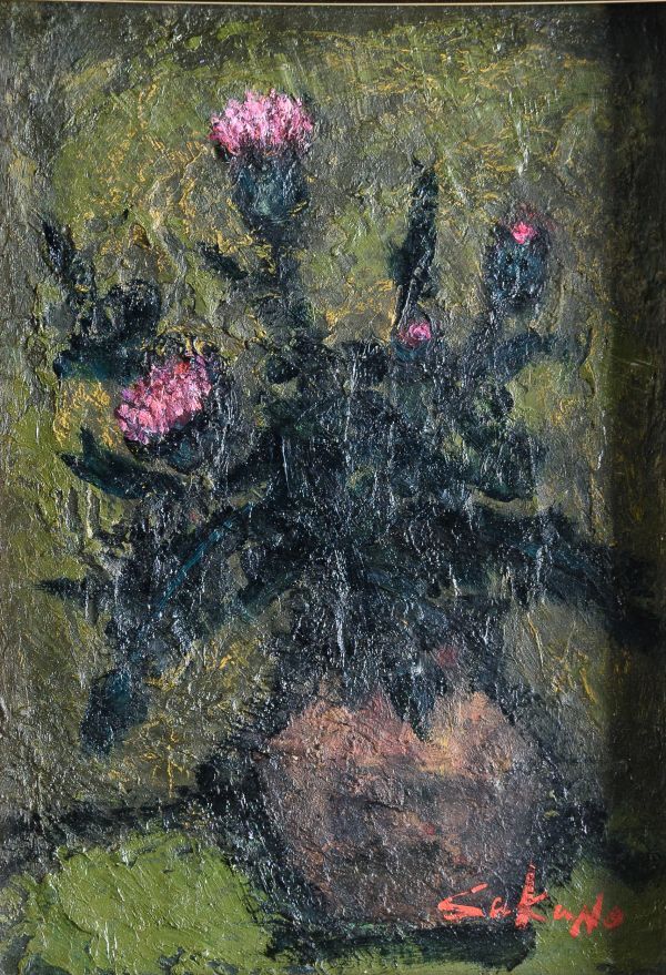 坂野昭文 | (日本・1939 -) 1939年広島県豊田郡本郷町に生まれる。 1957年大阪で働きながら絵を描く生活を続ける。 1961年入江絵画研究所入所。 1965年具現展で大阪市長賞受賞。 1977年渡欧・渡仏。ピエロに出合い自画像として永遠のテーマになる。 1985年具現賞受賞。東京・大阪・広島他で個展。 1986年竹原市忠海から大阪堺市に出る。 1988年福岡をはじめ毎年各地で個展。 |