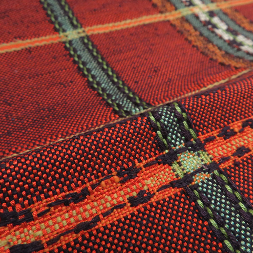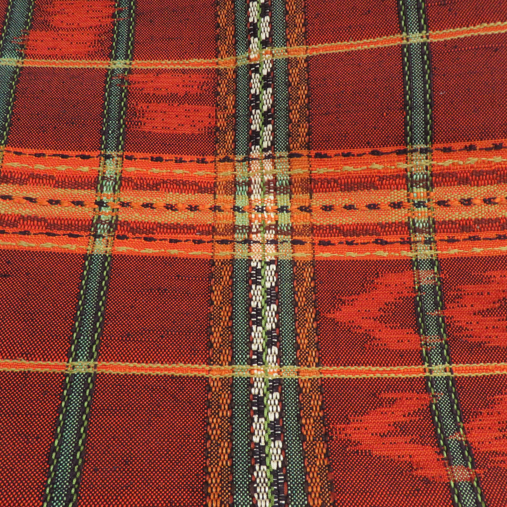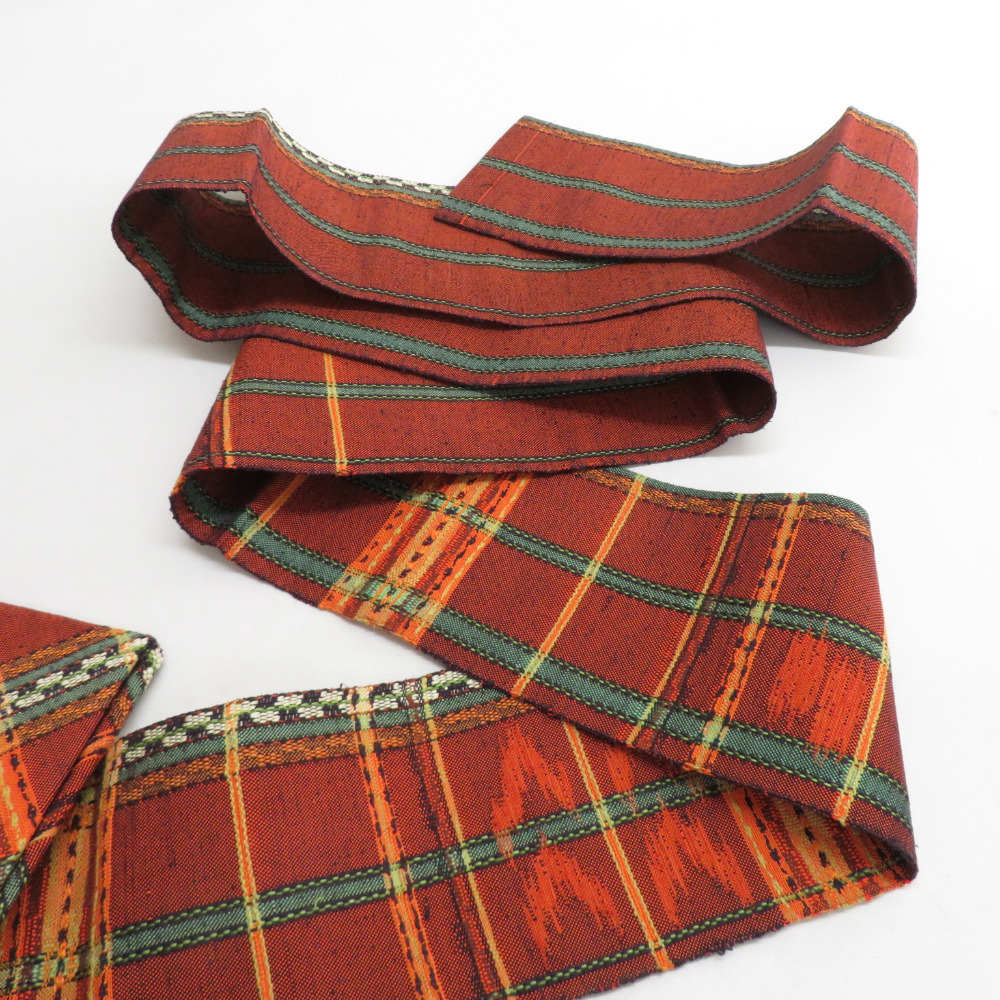 | 名古屋帯 紬 格子文様 赤橙色 六通柄 八寸帯 正絹 着物帯 カジュアル 長さ380cm |