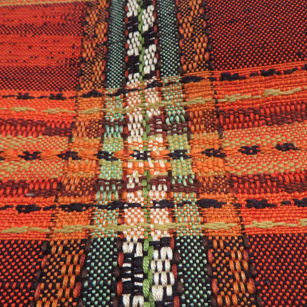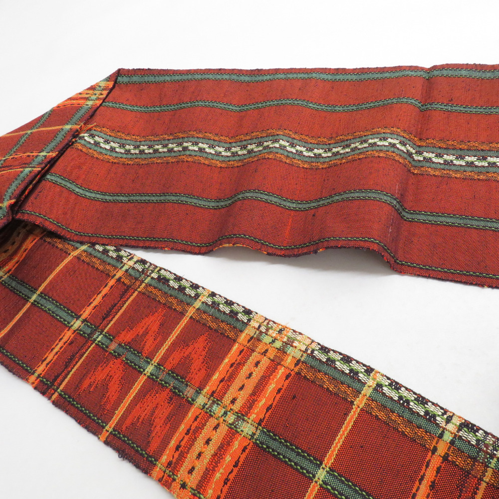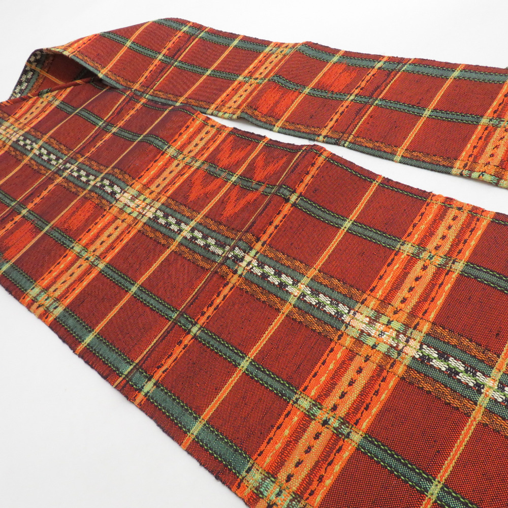 | 名古屋帯 紬 格子文様 赤橙色 六通柄 八寸帯 正絹 着物帯 カジュアル 長さ380cm |