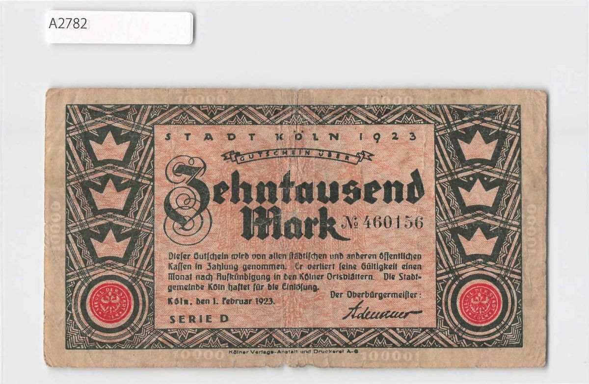 *[令]ケルン/ドイツ ハイパーインフレ期地方紙幣 ノートゲルト 1920年台[A2782]7h2