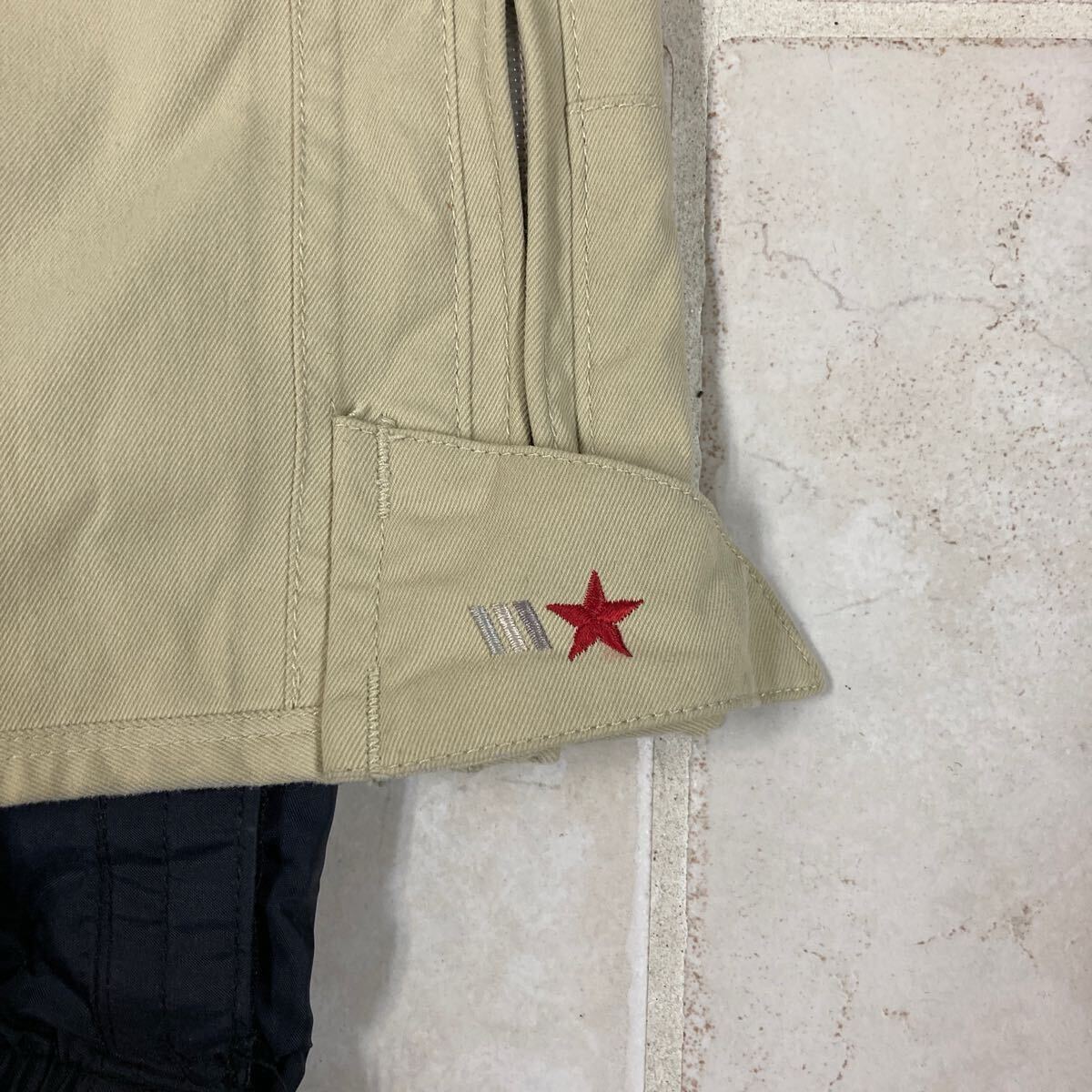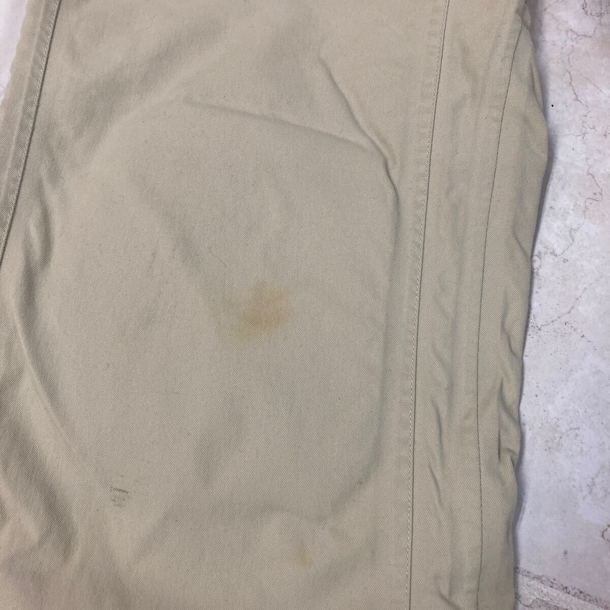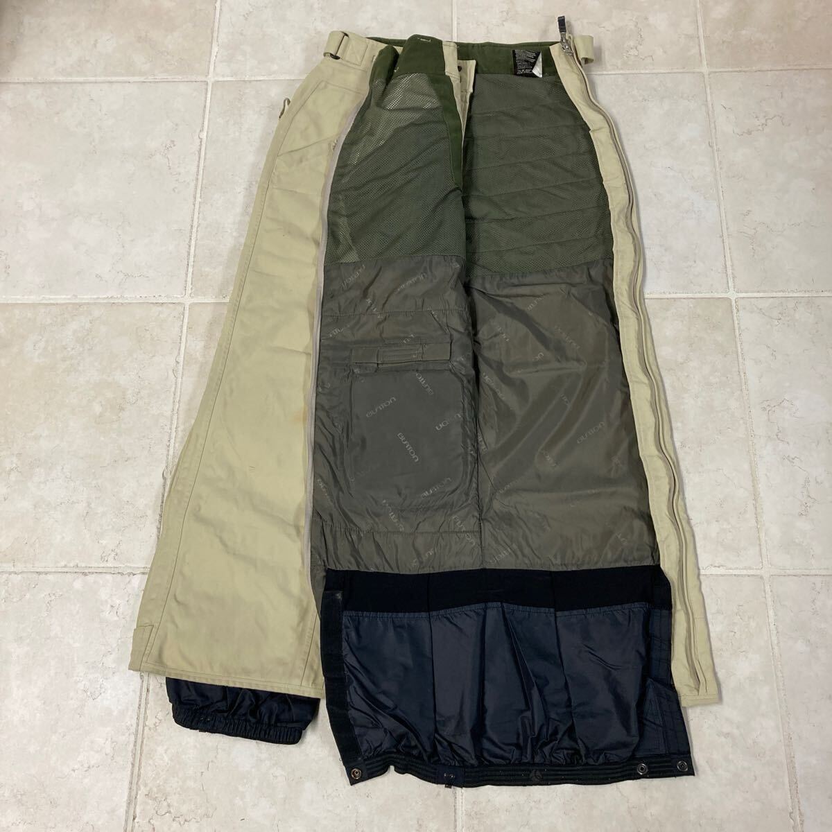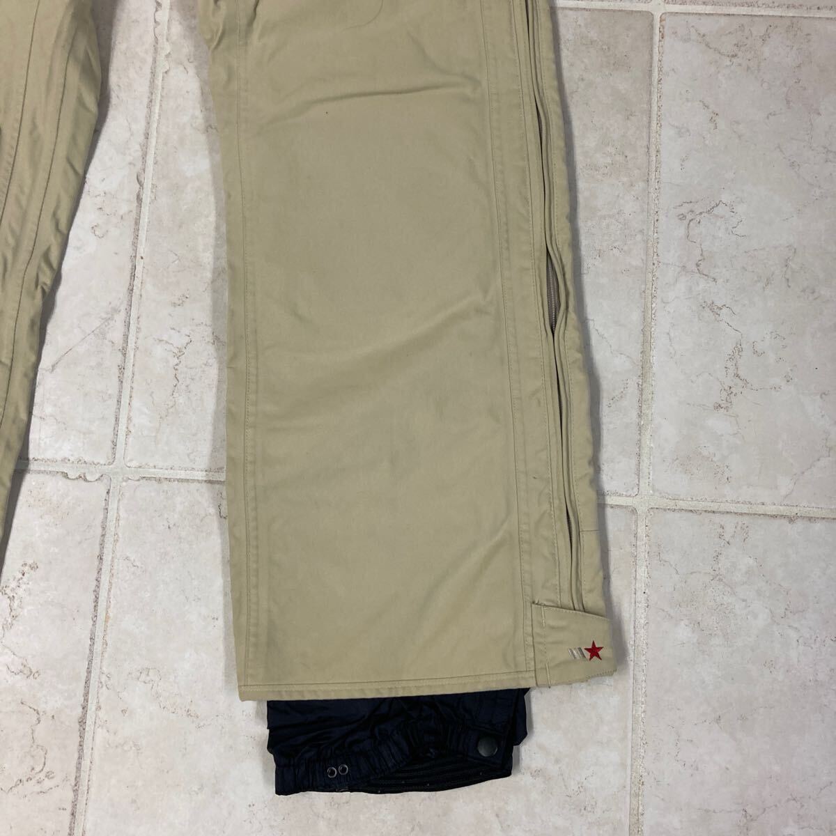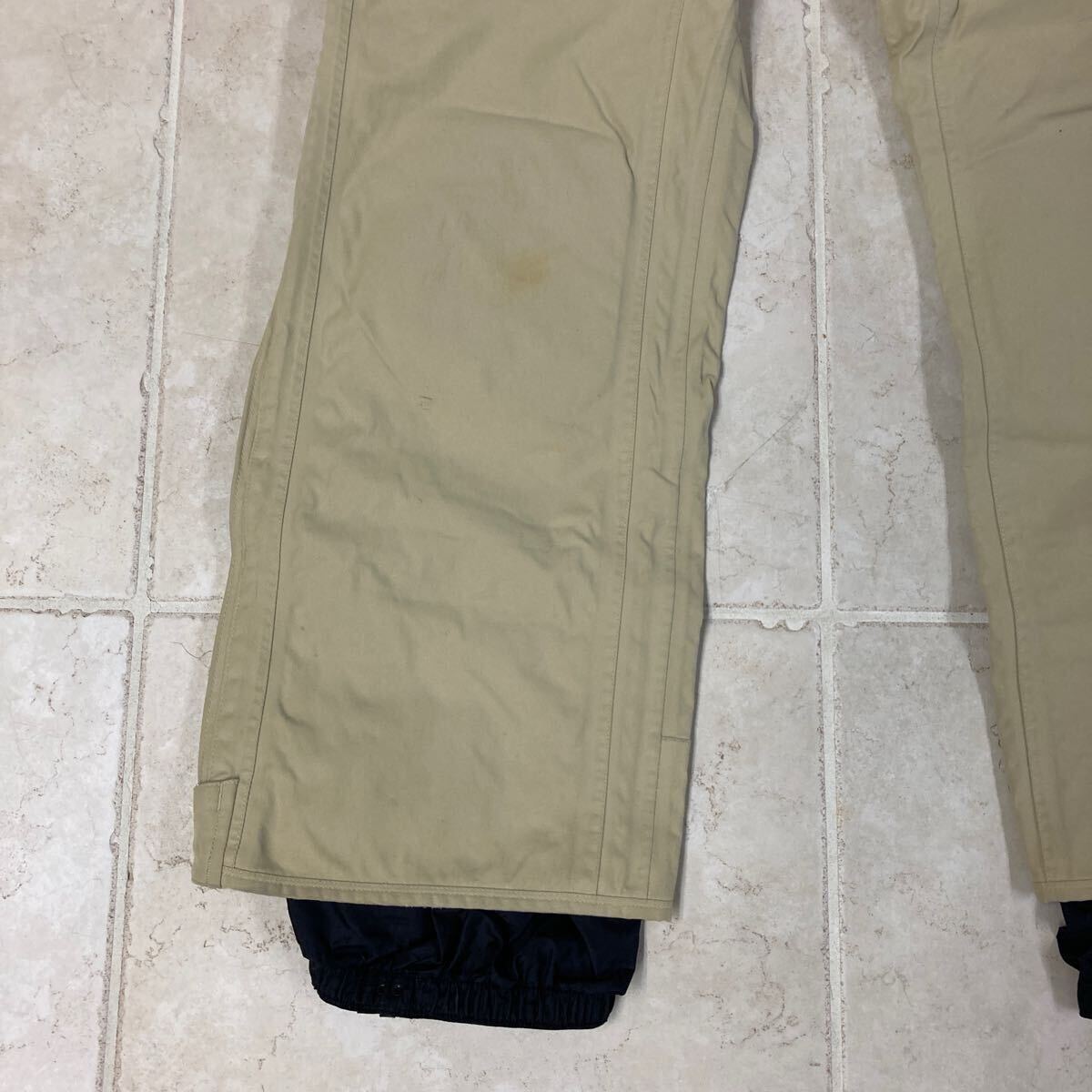 サイズはM、ウェスト45cm/総丈106cm/股上40cm/股下76cm/腿幅32cm/裾幅28cmになります。当方172cm55kgやや痩せ型にて着用しておりましたが、余裕があるサイズ感でした。両膝に薄いパッドが装備されており、サイドがジッパーでフルオープンできる仕様となっております。写真8枚目の右膝に薄い汚れがある以外は目立った傷や汚れは見受けられません。