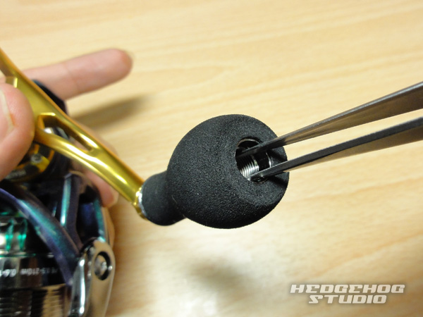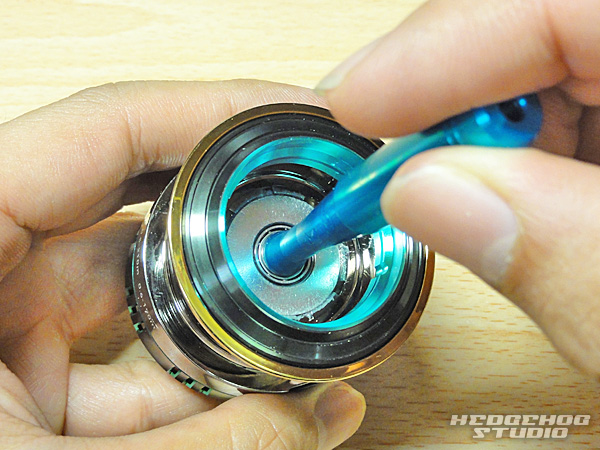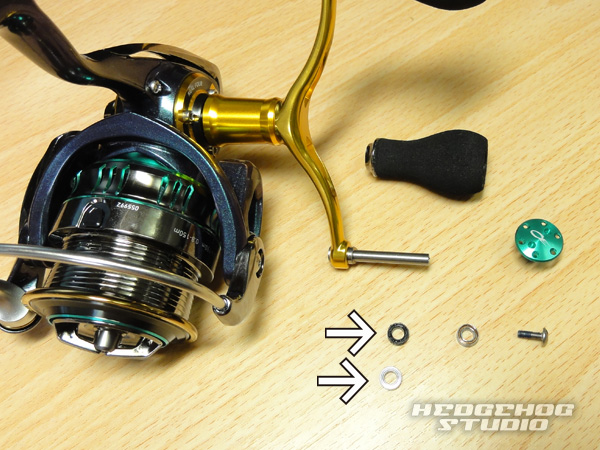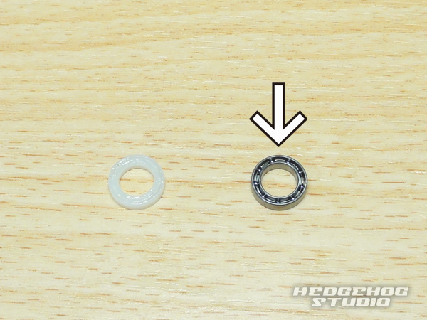 15エメラルダスAIRは最大3箇所にベアリングを追加出来ます。 ■トーナメントドラグベアリングチューン スプールシャフトの白いプラスチックカラーもベアリングに交換してドラグ性能を向上させることができます。 ![]() 白いプラスチックカラーは六角形の細いリングで止まっているだけですので、ハンドルノブキャップツールや爪楊枝などでリングを外してあげれば、簡単に取り外しができます。 ![]() 取り外した白いプラスチックカラーをベアリングと交換するだけです。 ベアリング化されることで、よりスムーズな滑り出しのドラグになります。 ■フィネススプールドラグベアリングチューン スプール内部にもベアリングを追加できます。 まずはドラグバネを外します。 ![]() 続いて、内部のワッシャー類もすべて外します。 すると奥にメタルカラーが入っていますのでこれを取り外してベアリングを追加します。 スプールの裏側からベアリングチェックツールやお箸などで押すと、メタルカラーは簡単に抜けます。 ![]() ベアリングの装着時にもベアリングチェックツールを使うとスムーズに作業が進みます。 最後に、取り外していたワッシャー類を再装着して作業完了です。スプール内部とスプールシャフトの両方がベアリング化されることで、ドラグのくいつきが減少し、最大の効果が発揮できます。 ■ハンドルノブ2BB仕様ベアリングチューン ハンドルノブ部分も1個の黒いプラスチックカラーをベアリングに交換するだけで、2BB化できます。まず、専用工具を使ってハンドルノブキャップを取り外します。 ※専用工具は別途お買い求めください。 ![]() 写真矢印部の黒いプラスチックカラーをベアリングと取り替えます。ノブの中にプラスチックカラーがくっついている事がよくありますので、カラーが見当たらない!と思ったらノブの中を覗いてみて下さい。 稀にノブの中に入っている黒いプラスチックカラーが、内部で引っかかってなかなか抜けない時があります。この様な時にハンドルノブキャップリムーバーがあると、先端のL字の部分をノブの中に入れて黒いプラスチックカラーを引っかけることができますので、とても便利です。 ![]() ベアリングの取り付けがうまくいかない場合はピンセットなどでベアリングの位置を調整すると簡単に装着が出来ます。 最後にハンドルノブキャップを元に戻せは作業完了です。 ※こちらのキットを取付するにあたって、マグシールドが内蔵されているパーツ (マグシールドの刻印がされている、ローター下の部分)には一切手を触れません。 従いまして、作業中にマグシールドが抜けるようなことは一切ありませんのでご安心下さい。 ※パーツを組み直して純正の状態にリールを戻すことも簡単に可能です。 |