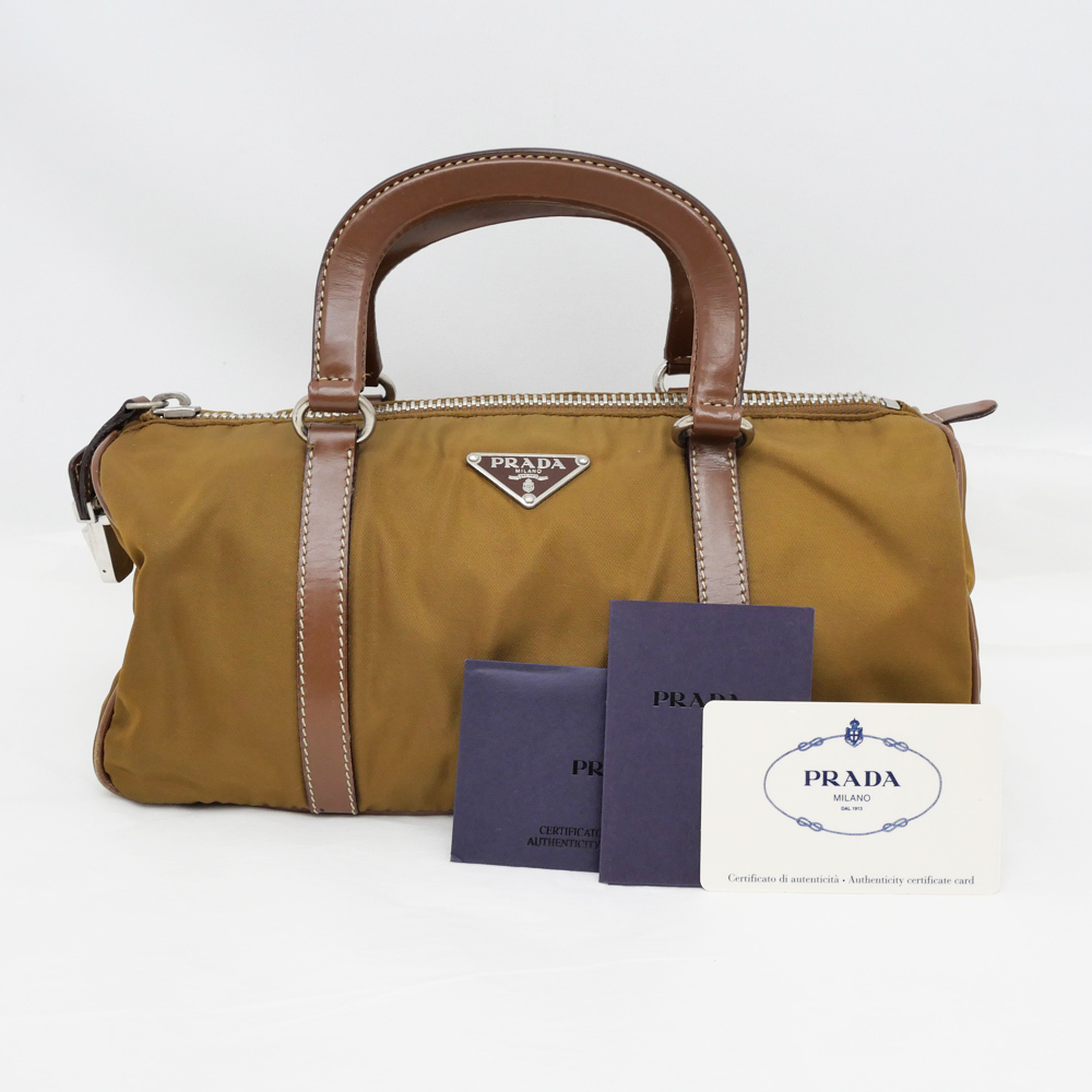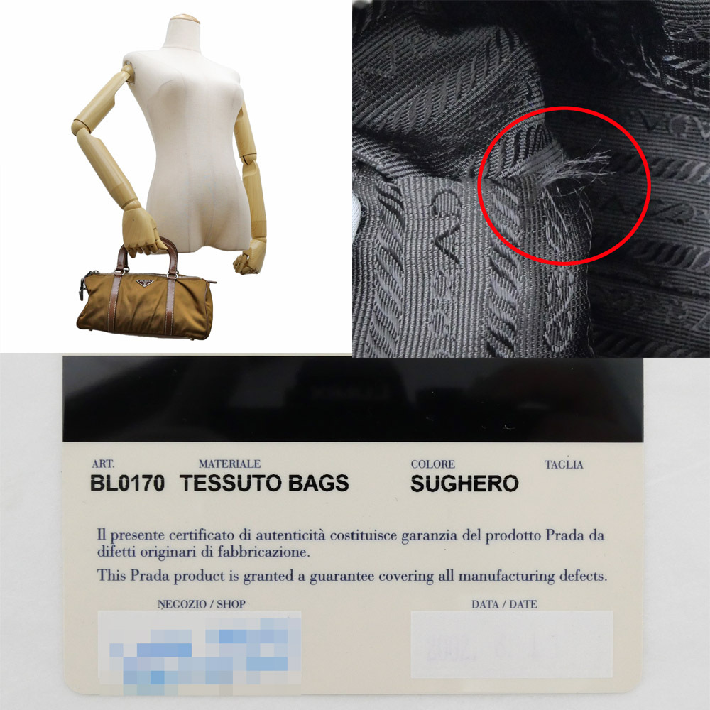 【名東】プラダ ミニボストンバッグ ハンド ブラウン BL0170 ナイロン レディース その他