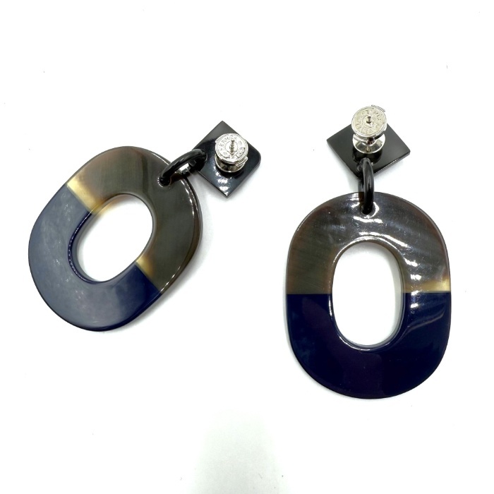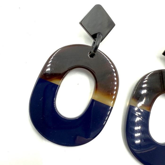 | 【コメント】 バッファローホーンのバイカラー大ぶりピアスです。箱付き。使用感はあまり感じられず、気になる傷や汚れもなく全体的に状態の良い綺麗なお品物です。 |